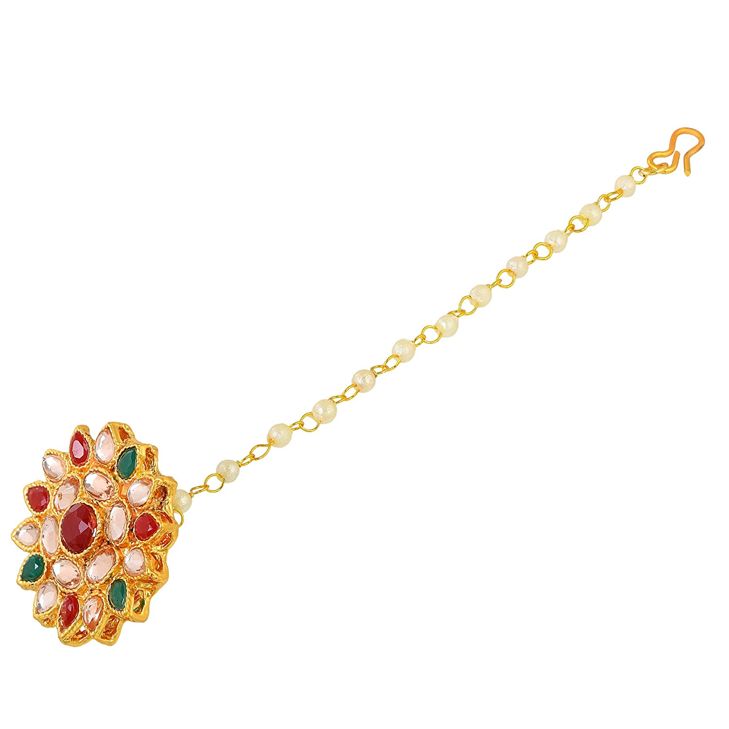 Goldplated Kundan Colourful CZ Pearl Strand Raakdi Rajasthani Bindi BORLA