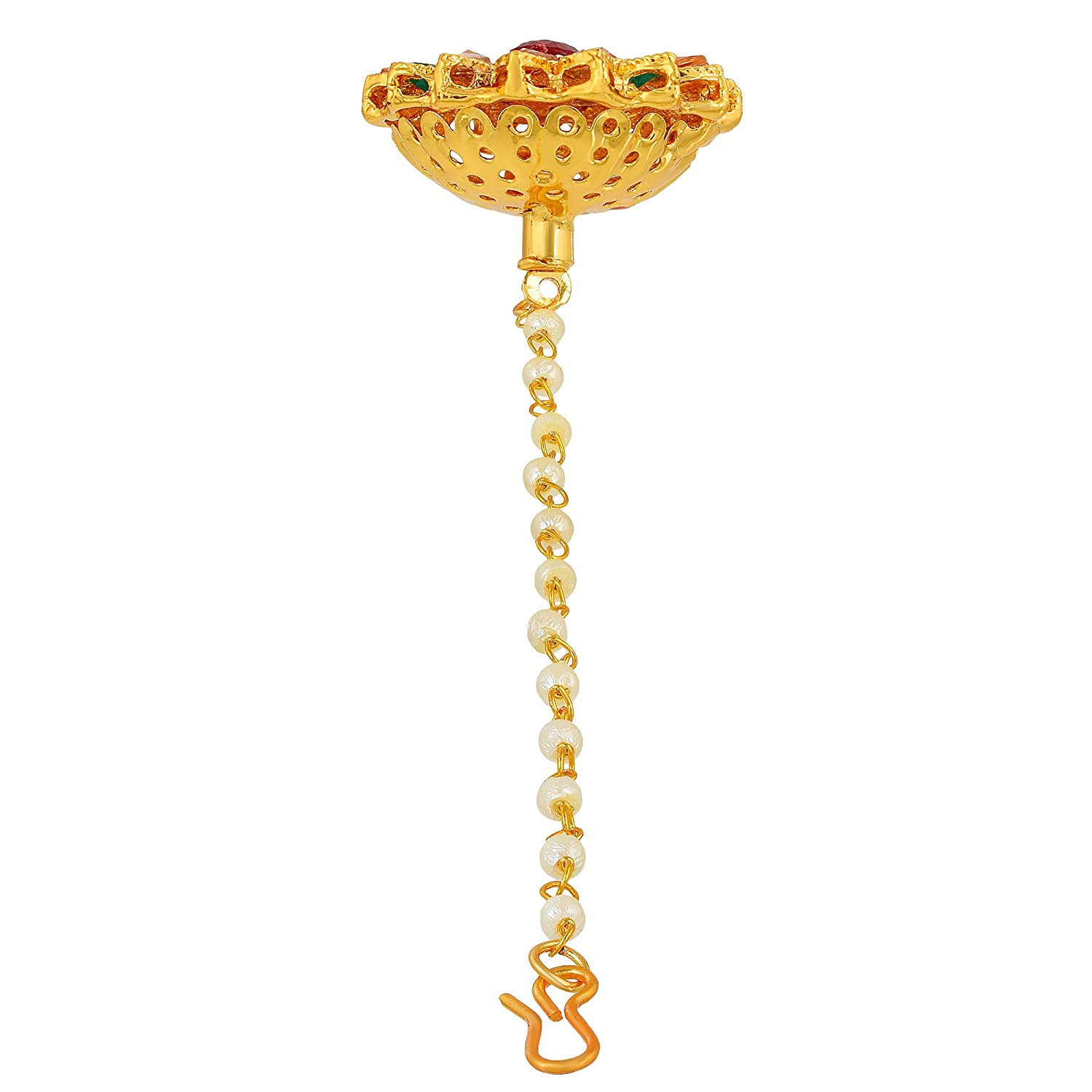 • Handmade with Gold plated Brass, studded with Kundan and Colourful CZ. Pearl string of 6 Inch long.