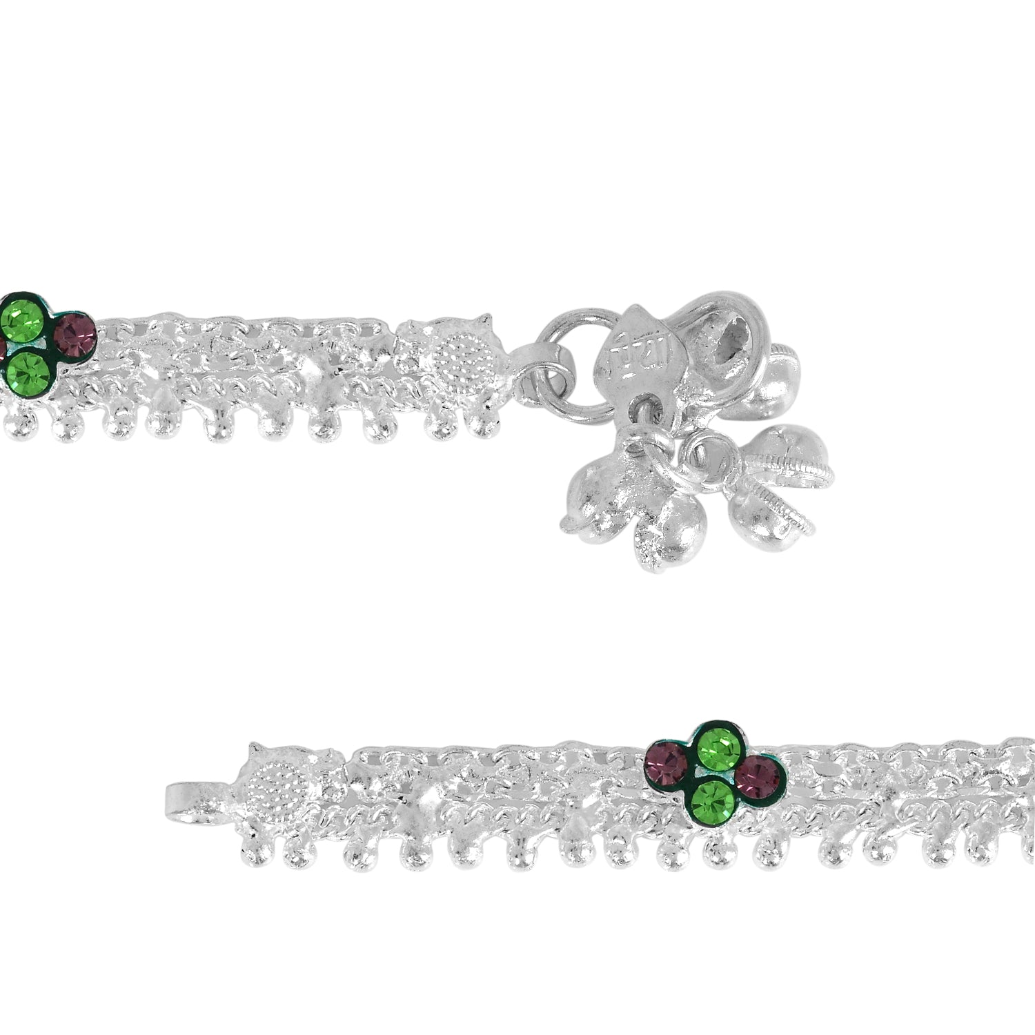 Silver plated colourful handmade bead design flat and broad strand Anklet