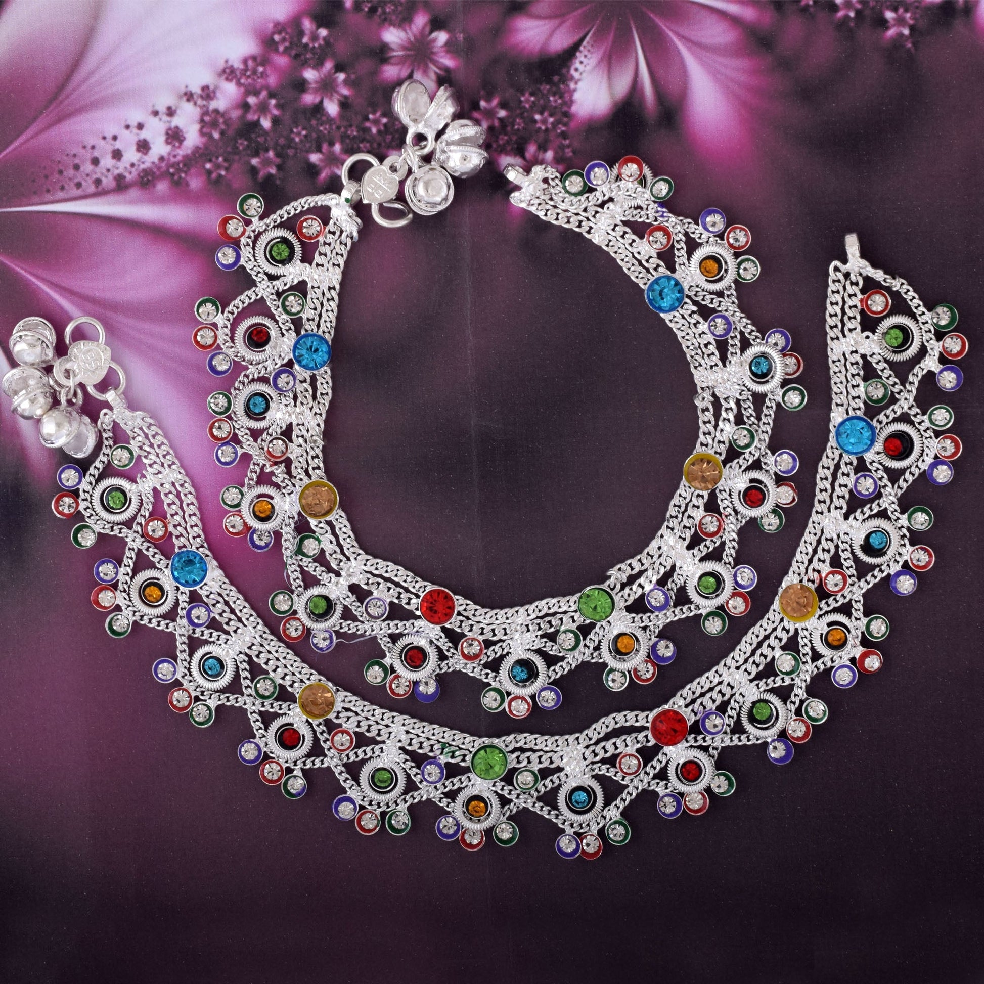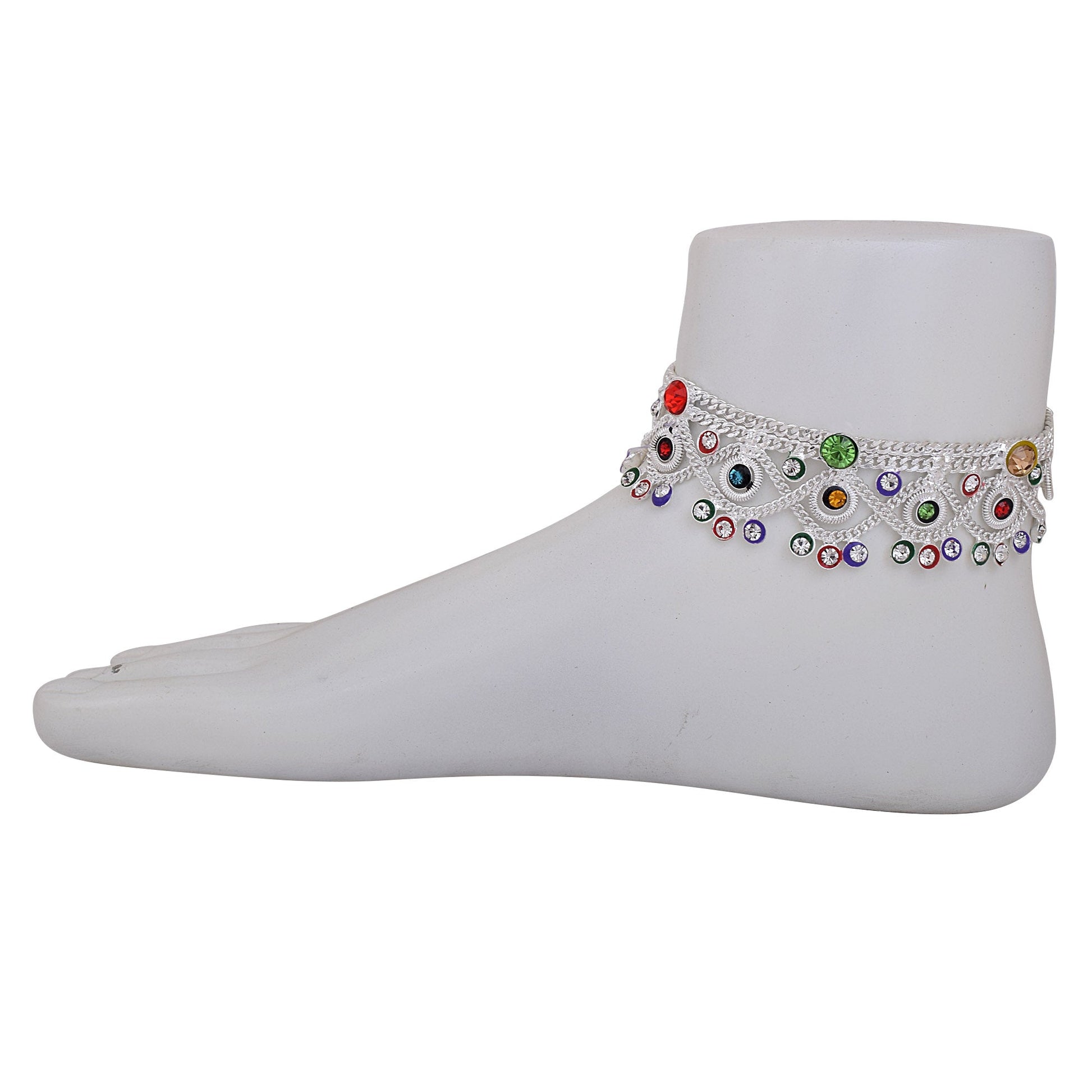 Silver plated, Colourful Multi-Colour Crystal Studded, Toran design Payal