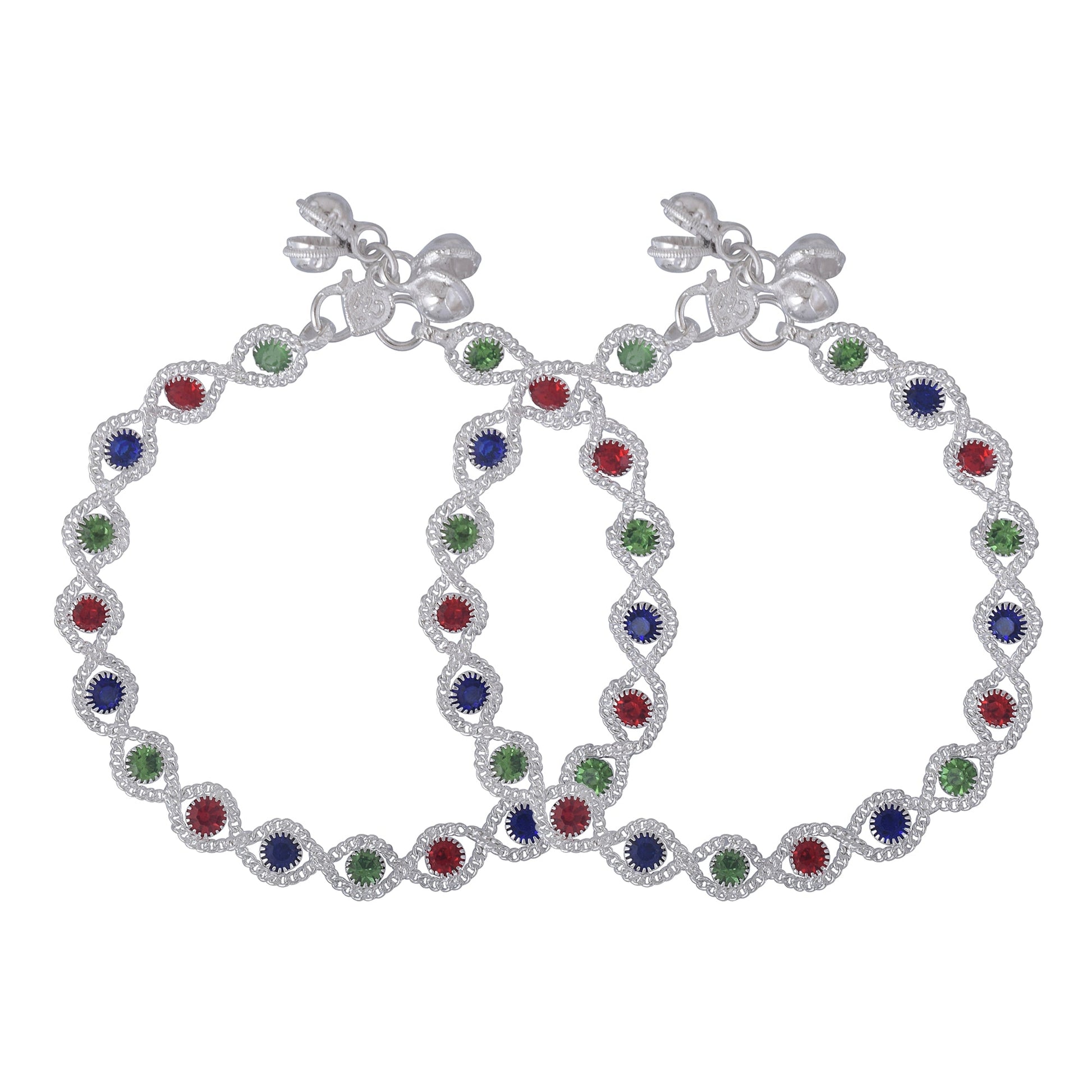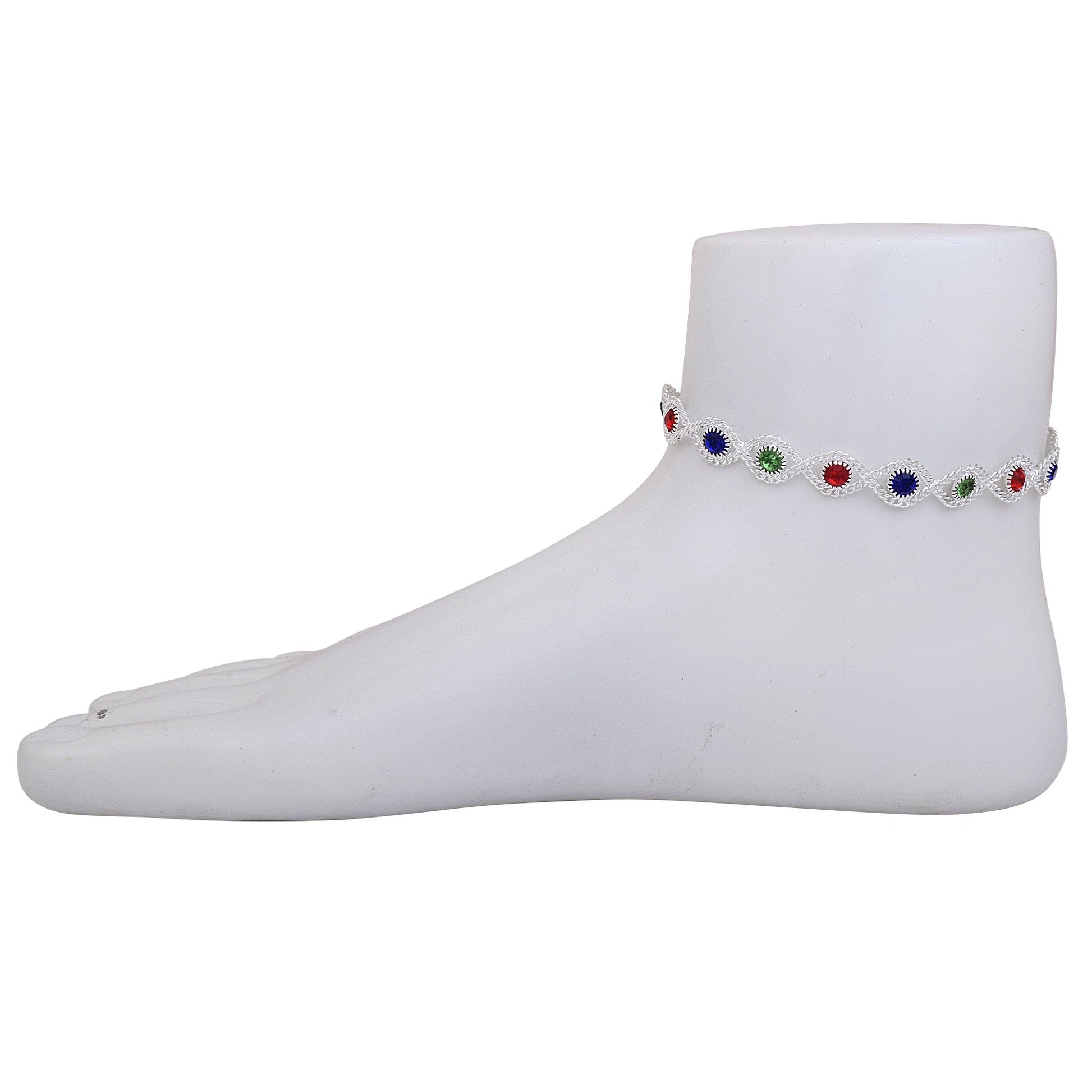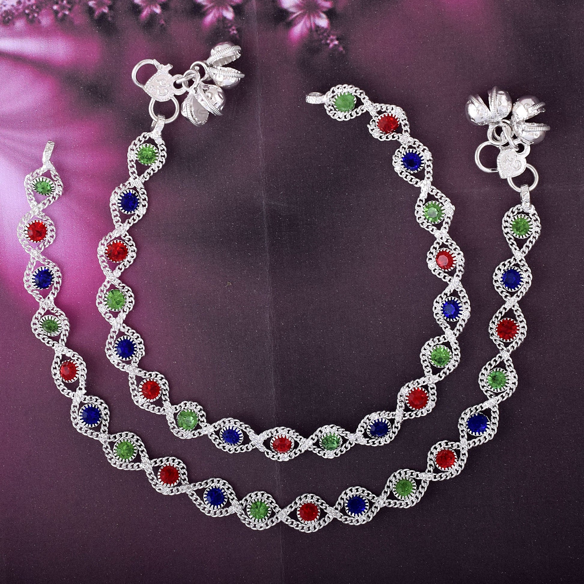Silver plated Multi-colour AD studded, eye shaped, Stylish payal pajeb Anklet