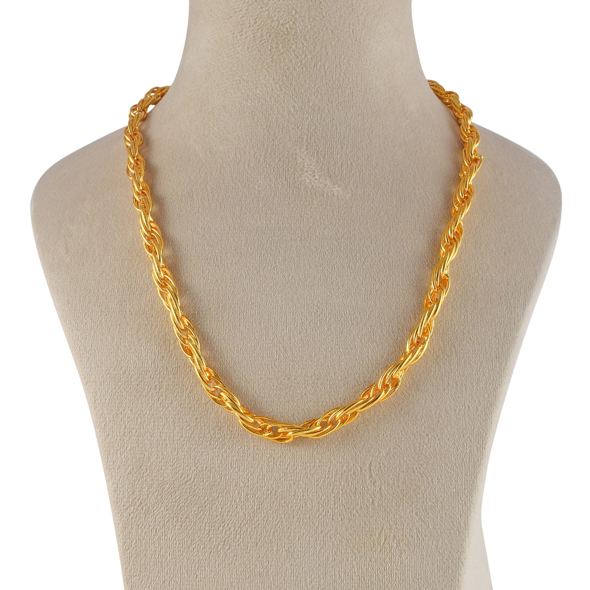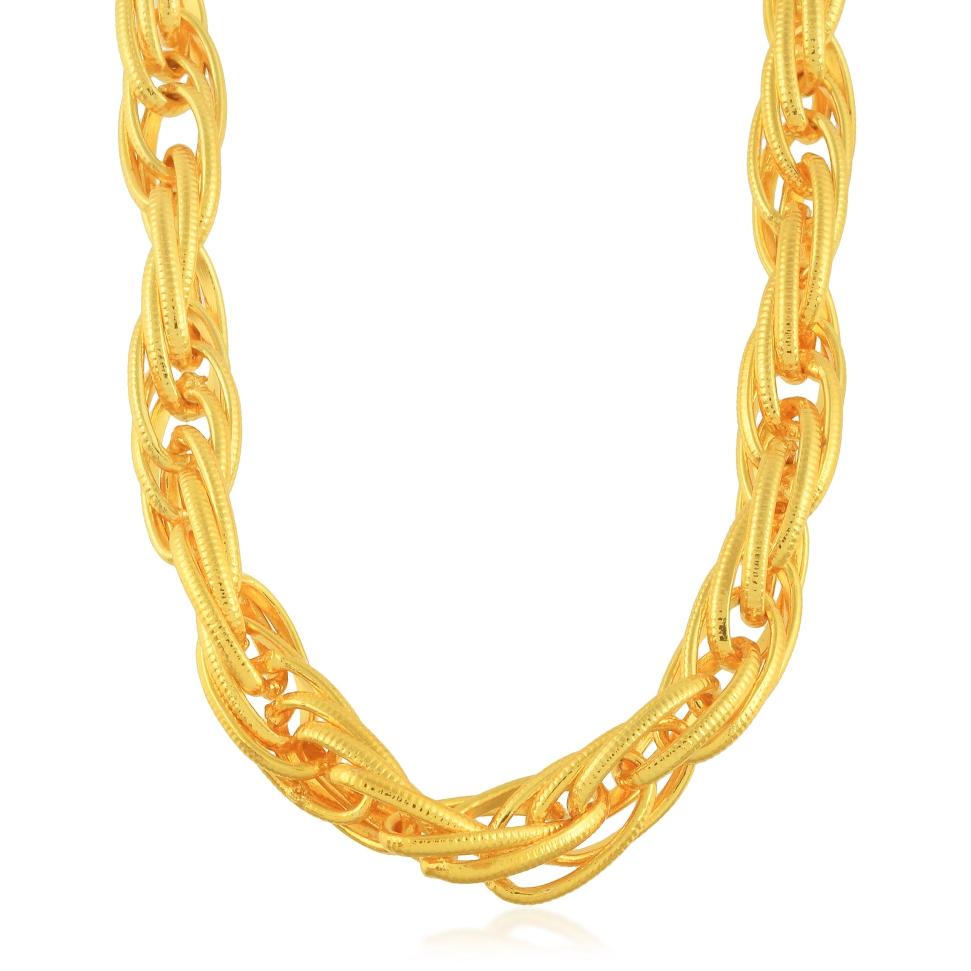 Brass Goldplated Textured Oval Link Fashion Necklace Chain