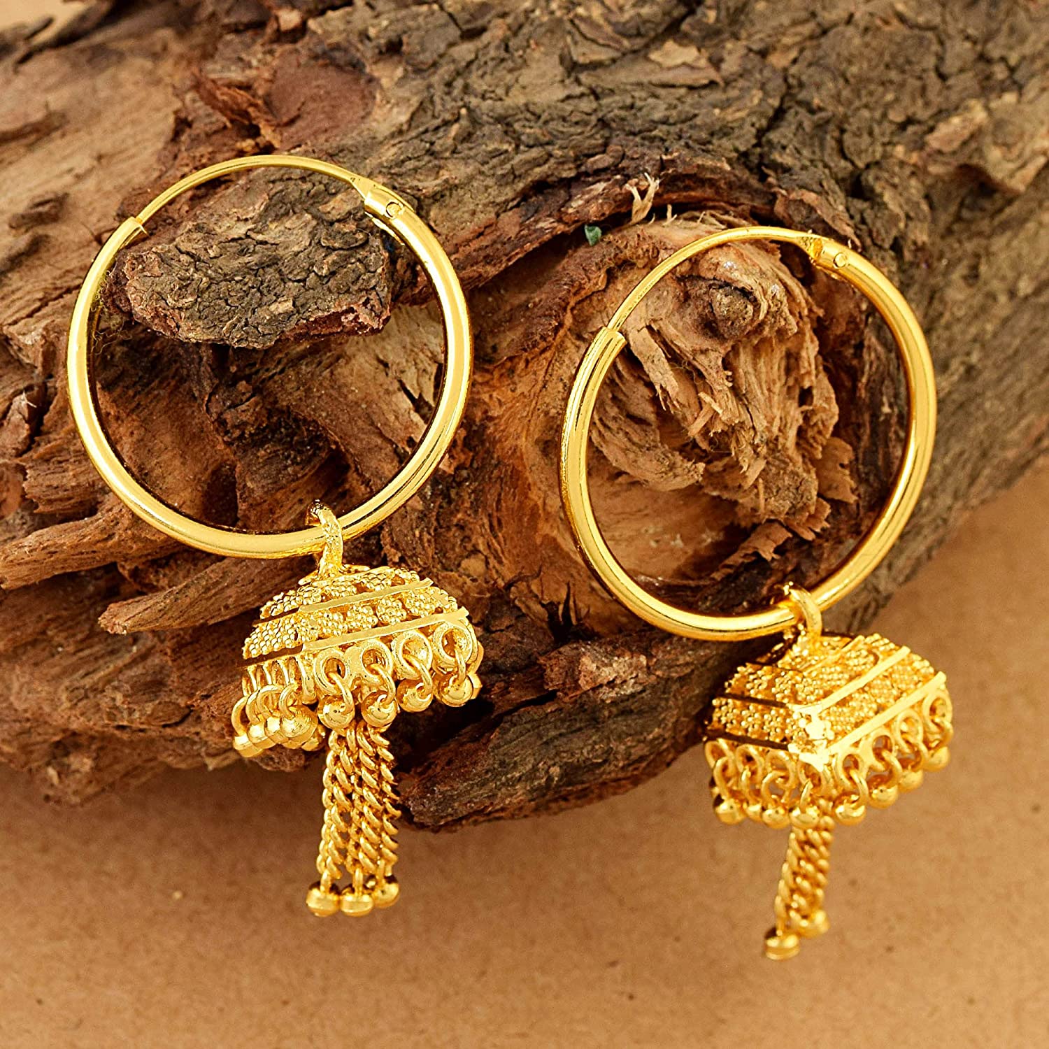 Brass Gold Plated Ethnic Hoop Jhumki earrings for Women