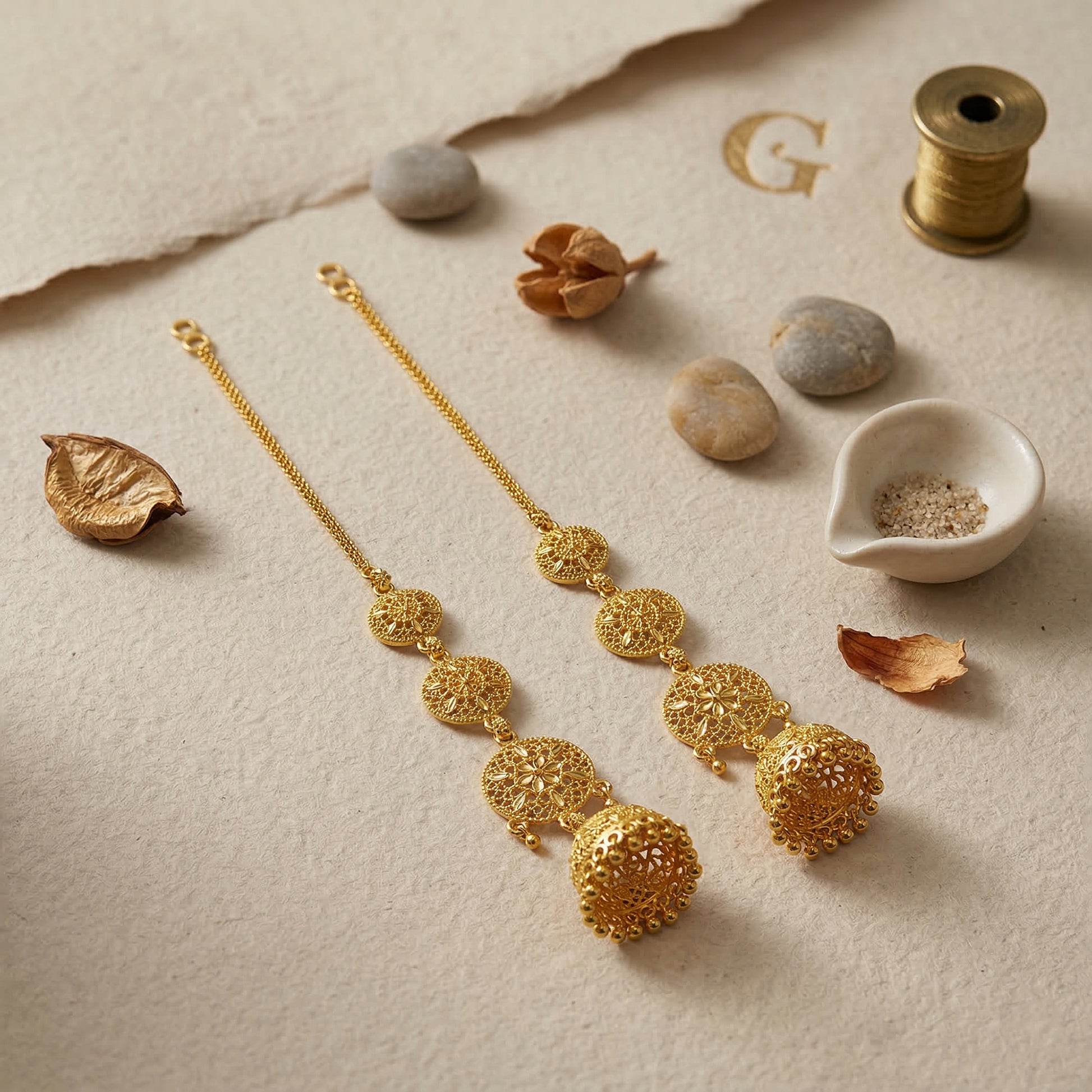 Brass Gold plated Handmade Kan chain long Jhumki for Women tradtional (JHAT8539)