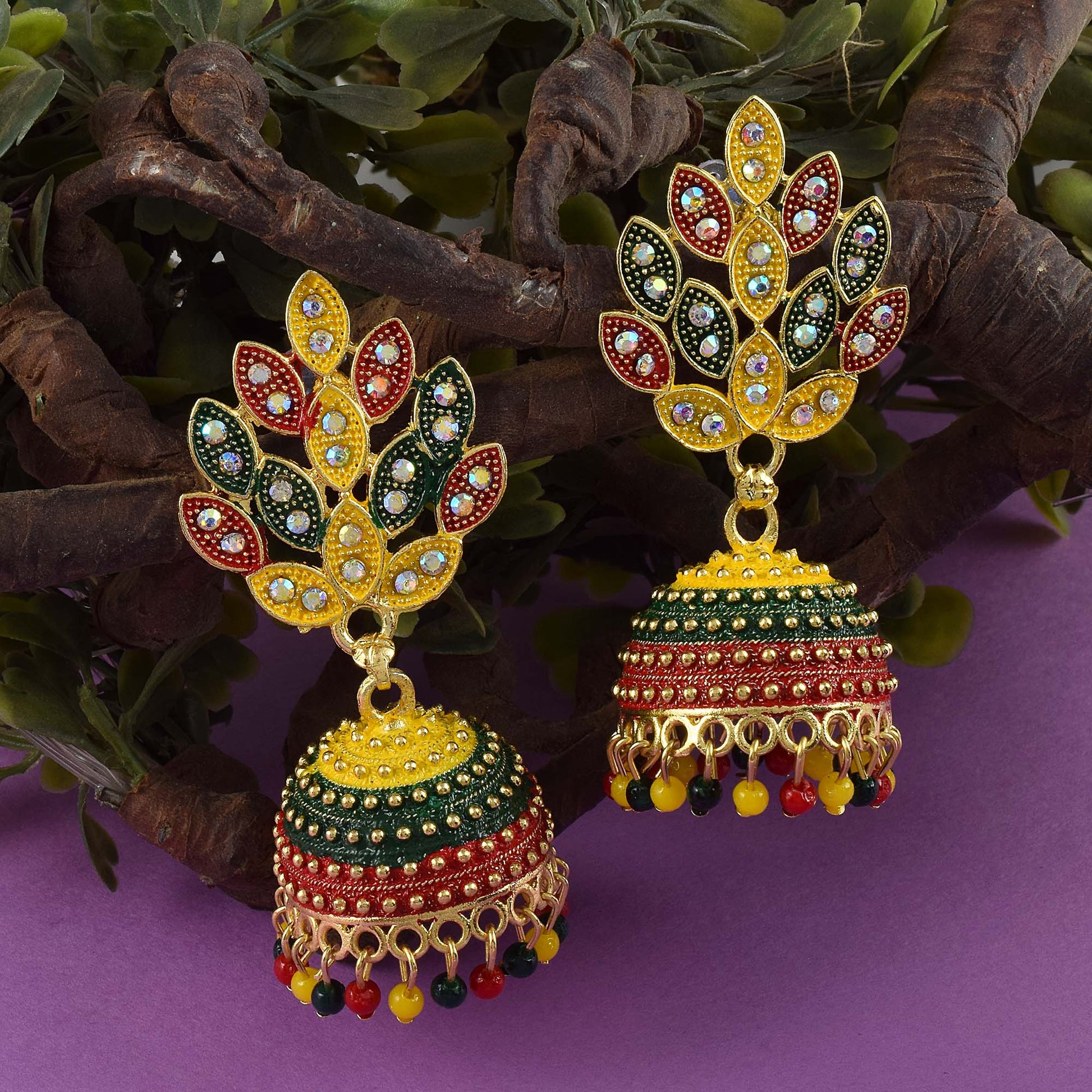 Brass Goldplated Handmade Rasrawa Mutlcolour Colourful Jhumka Earrings
