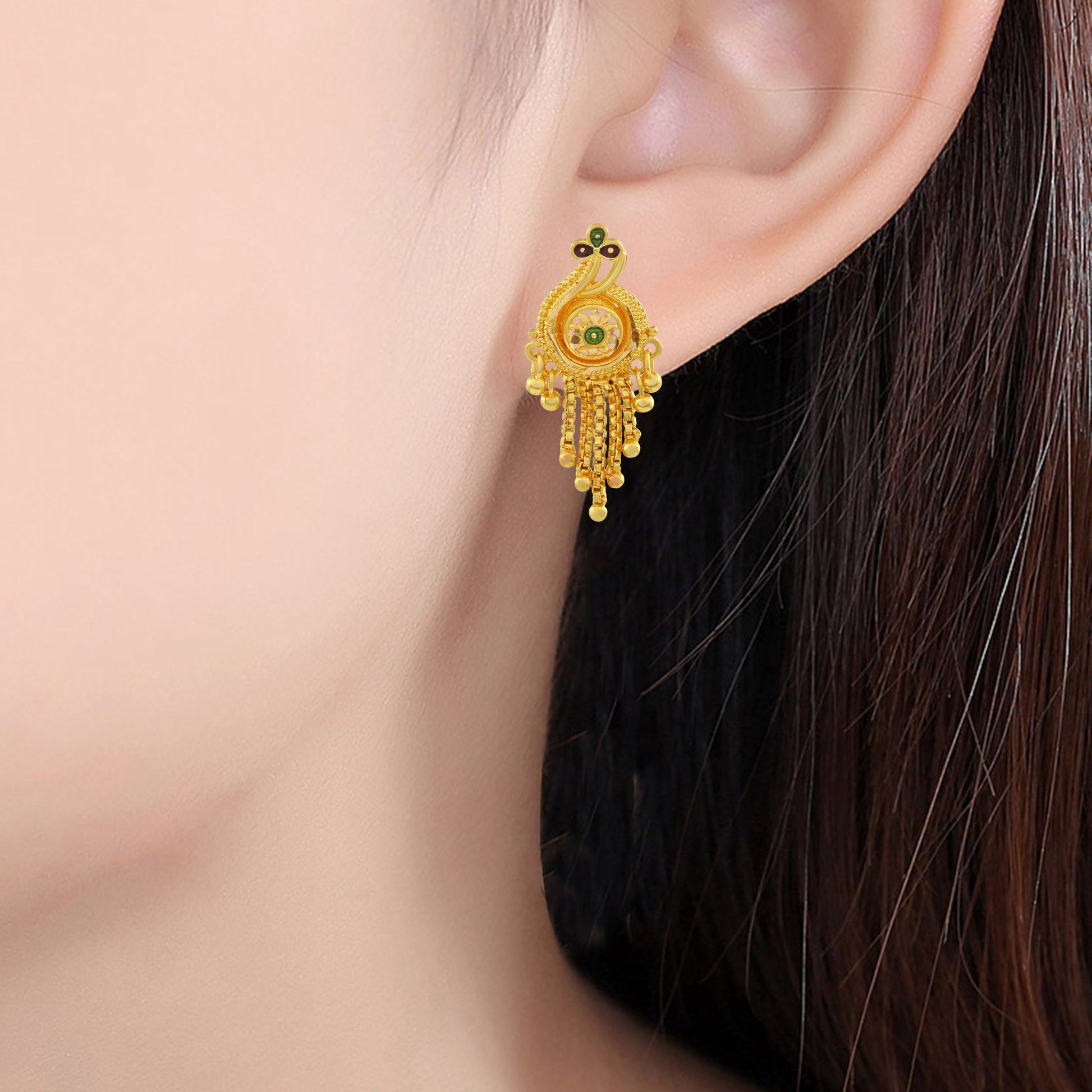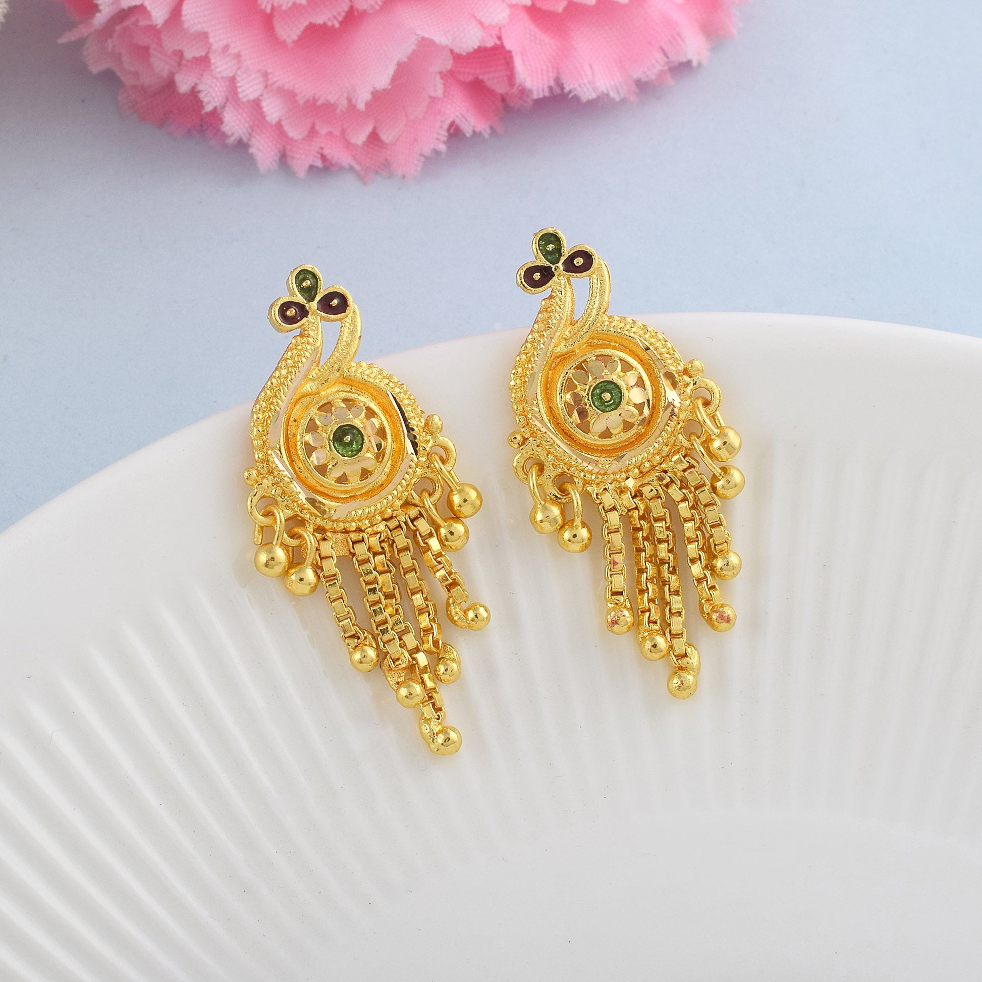 Brass Goldplated Meenakari Tassle small Fashion Stud Earring Women