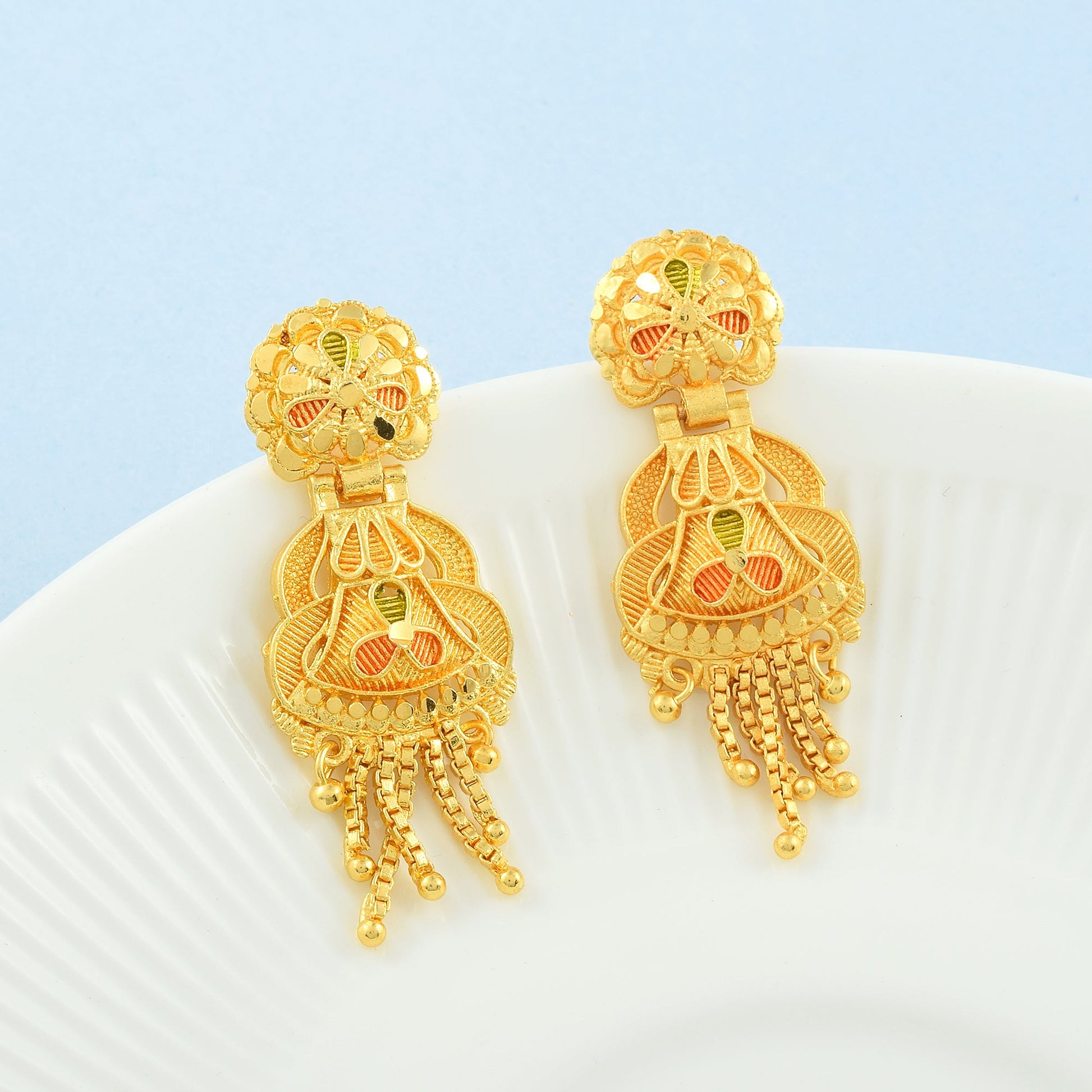 Brass Goldplated Tassled Meenakari women Fashion Earring