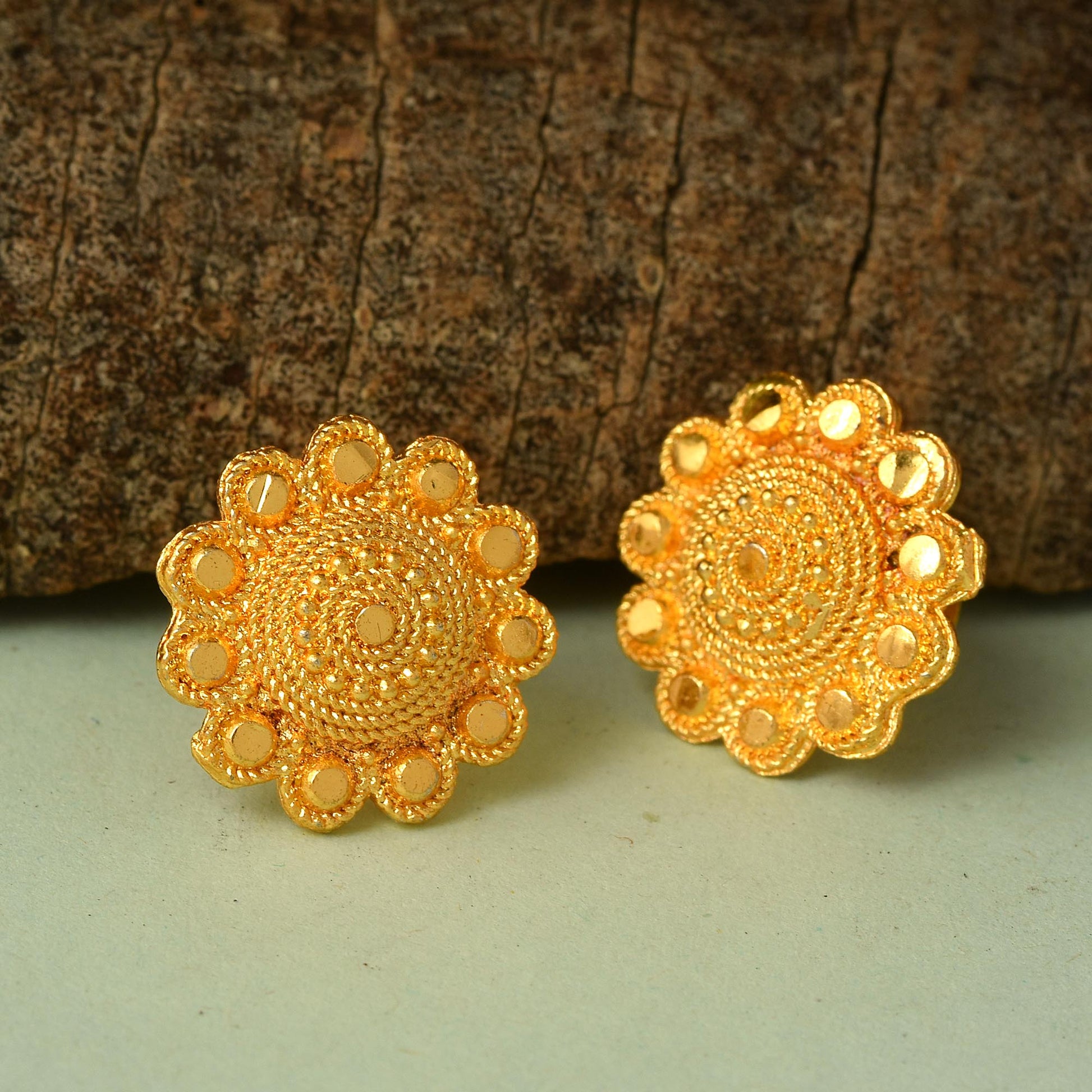 Brass Micron Goldplating Handmade Sunflower design Chilai Work Fashion Stud Earrings