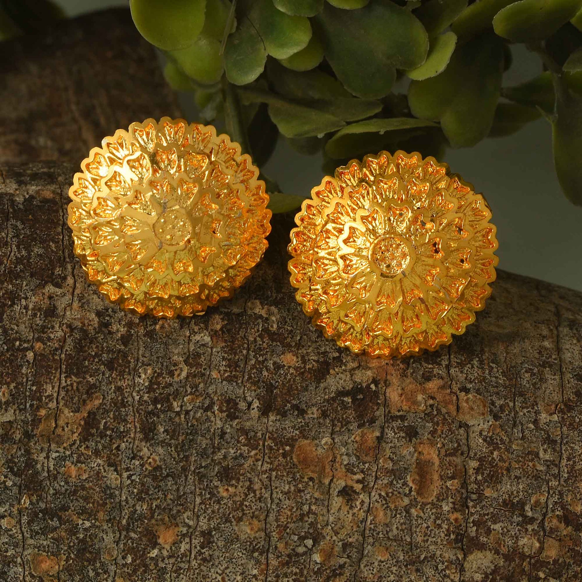 Brass Micron Goldplating Handmade Chilai Work Fashion Stud Earrings