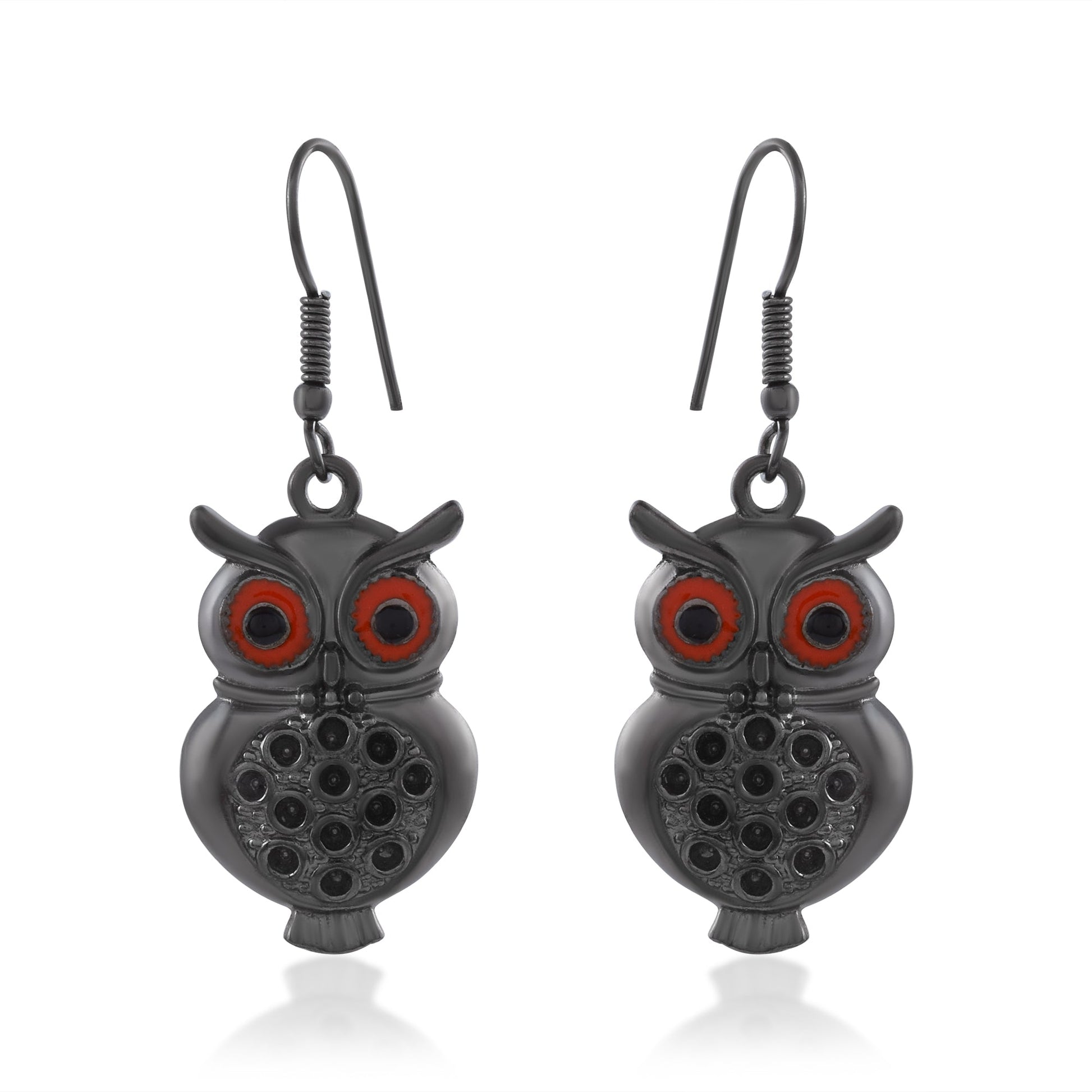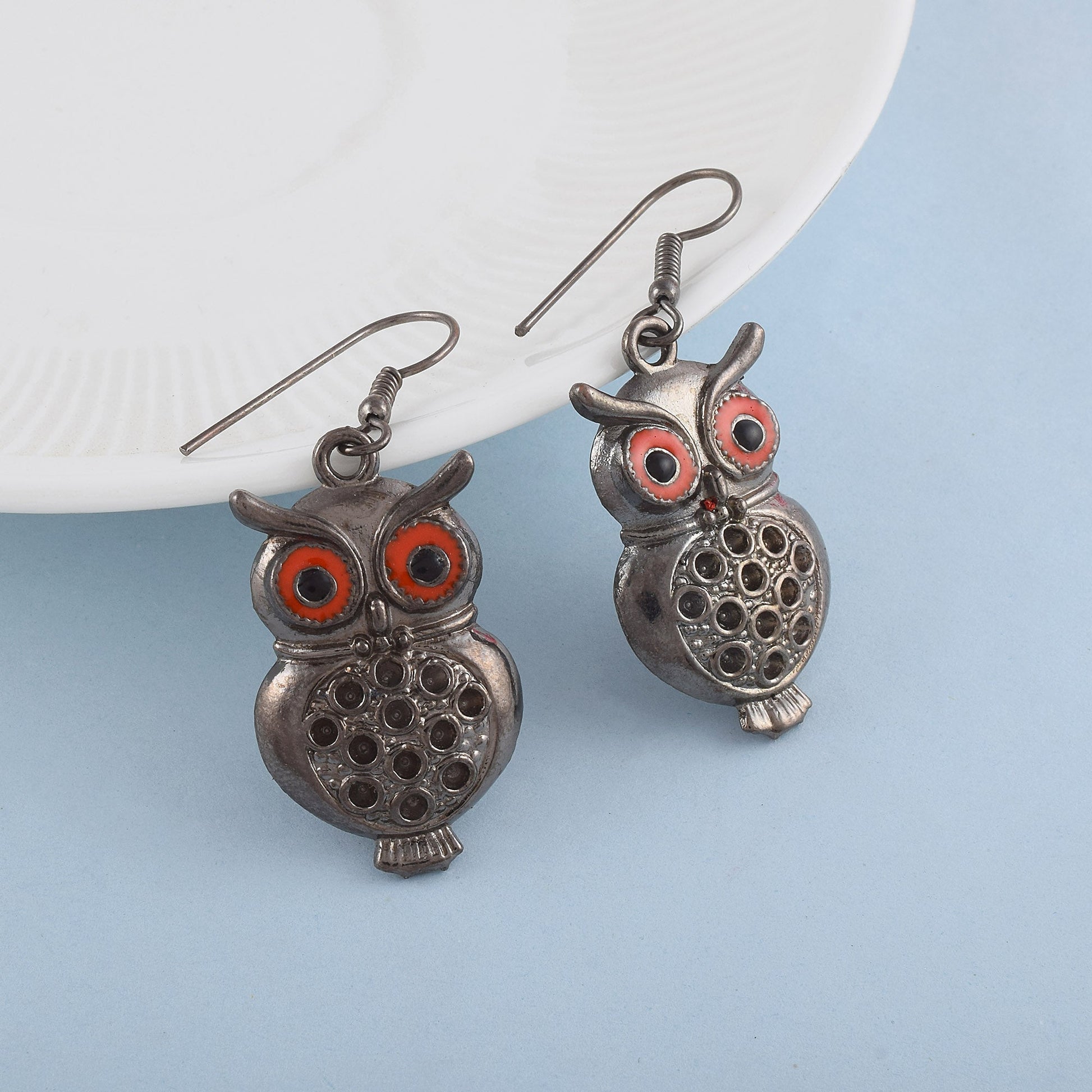 Brass Oxidised Finish OWL shaped Fashion Earrings (ERGS5997)