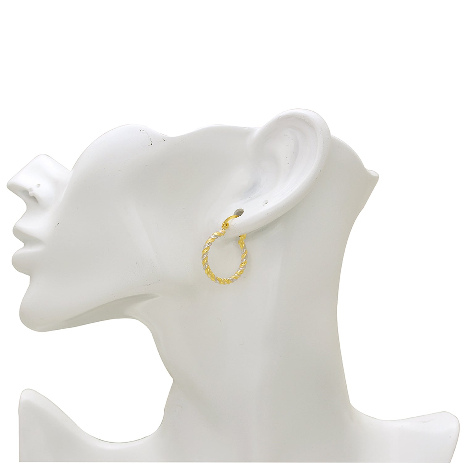 Gold and Silver plated Dual tone Brass Rope design hoop bali earrings