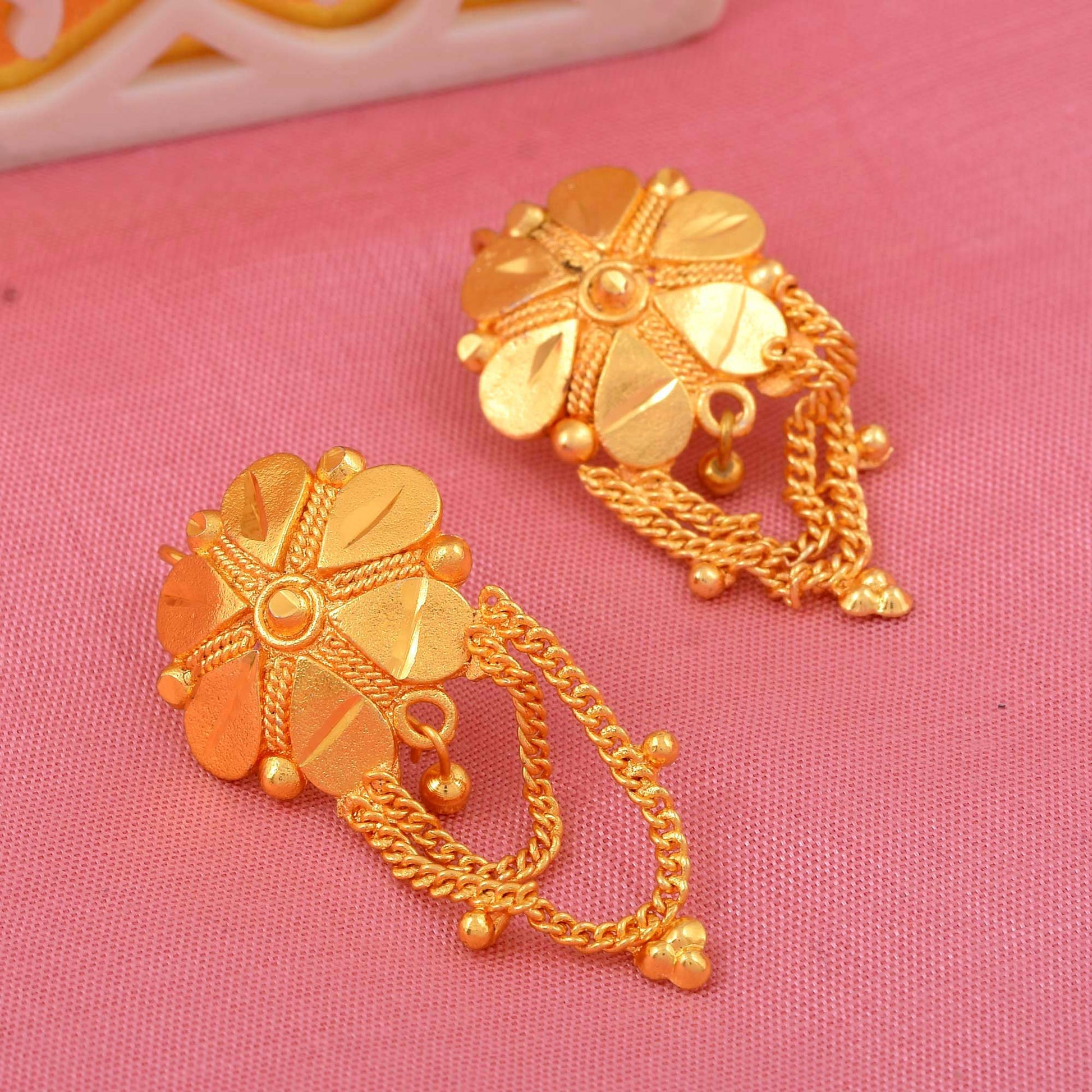 Gold plated Brass Flower with Danglers Handcrafted Stud Earrings for Women