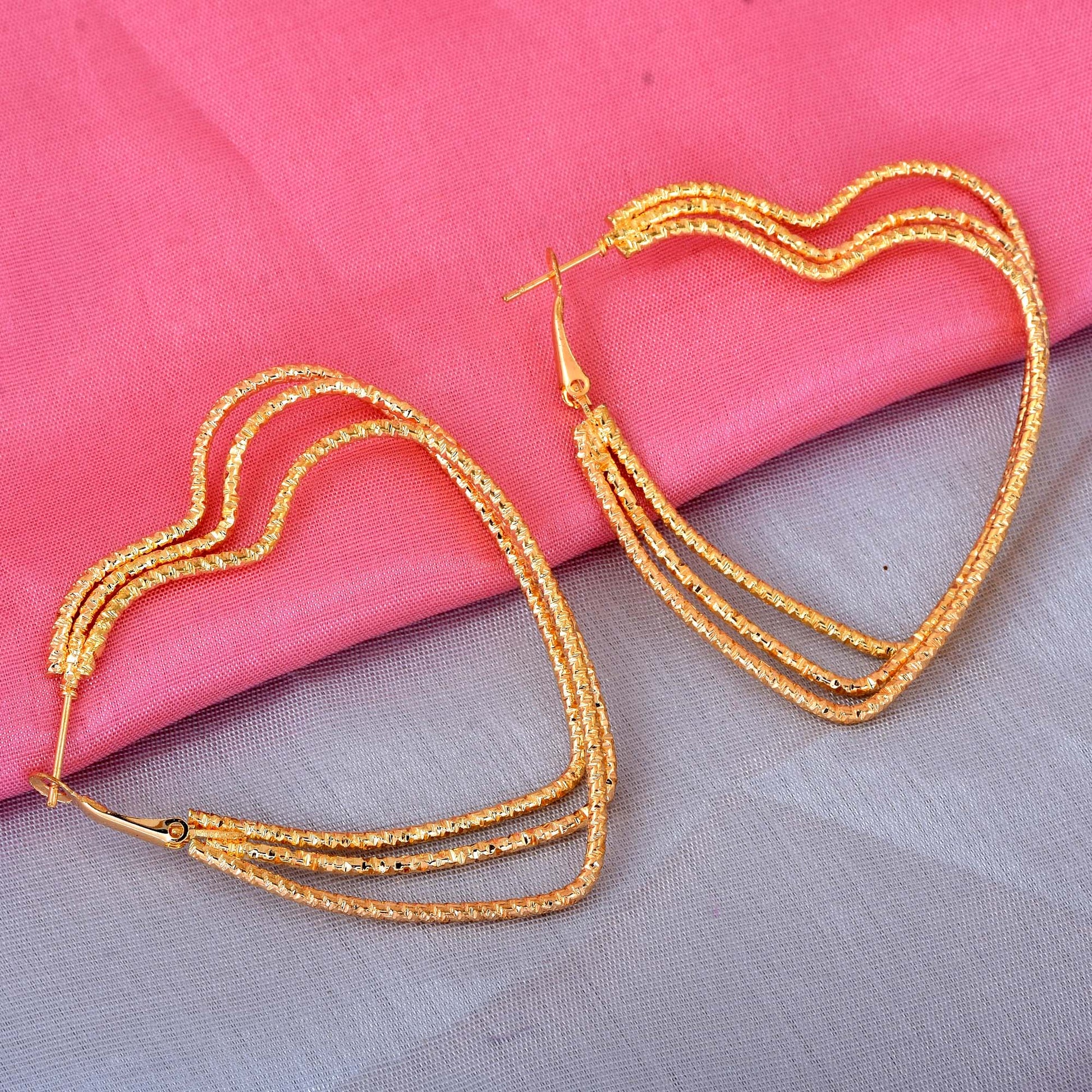 Gold plated Brass, Three Layer Heartshape design Hoop bali fashion earrings