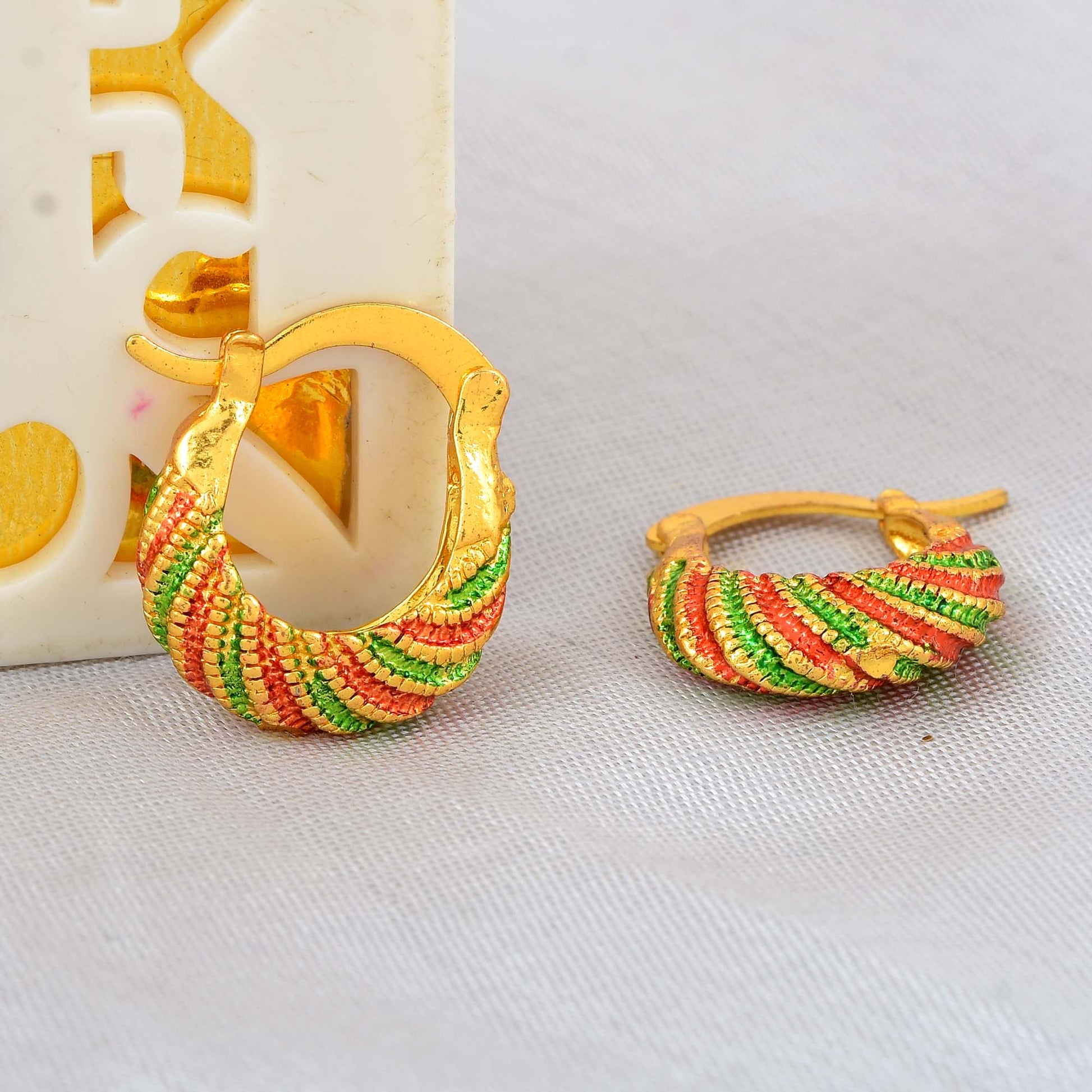 Gold plated Meenakari basket shaped hoop earrings