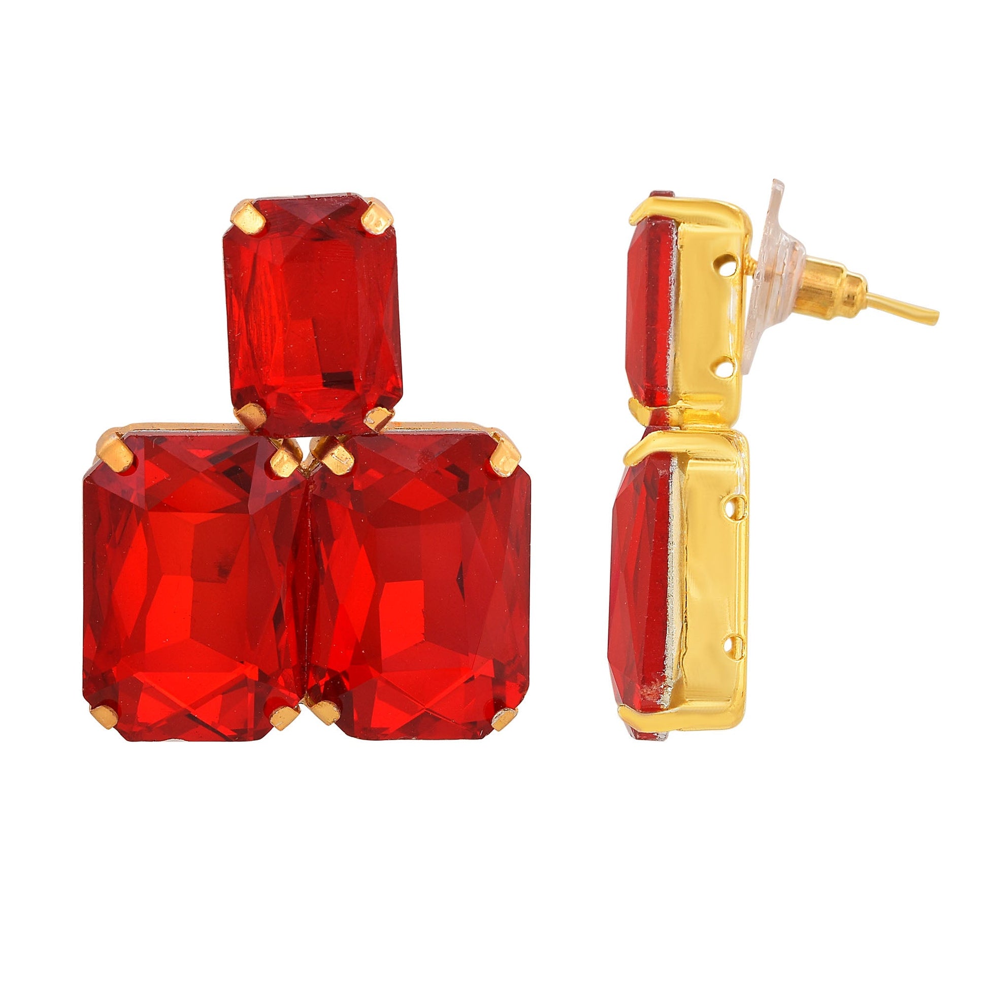 Gold plated Red colour Three Octagon Fashion earring Women