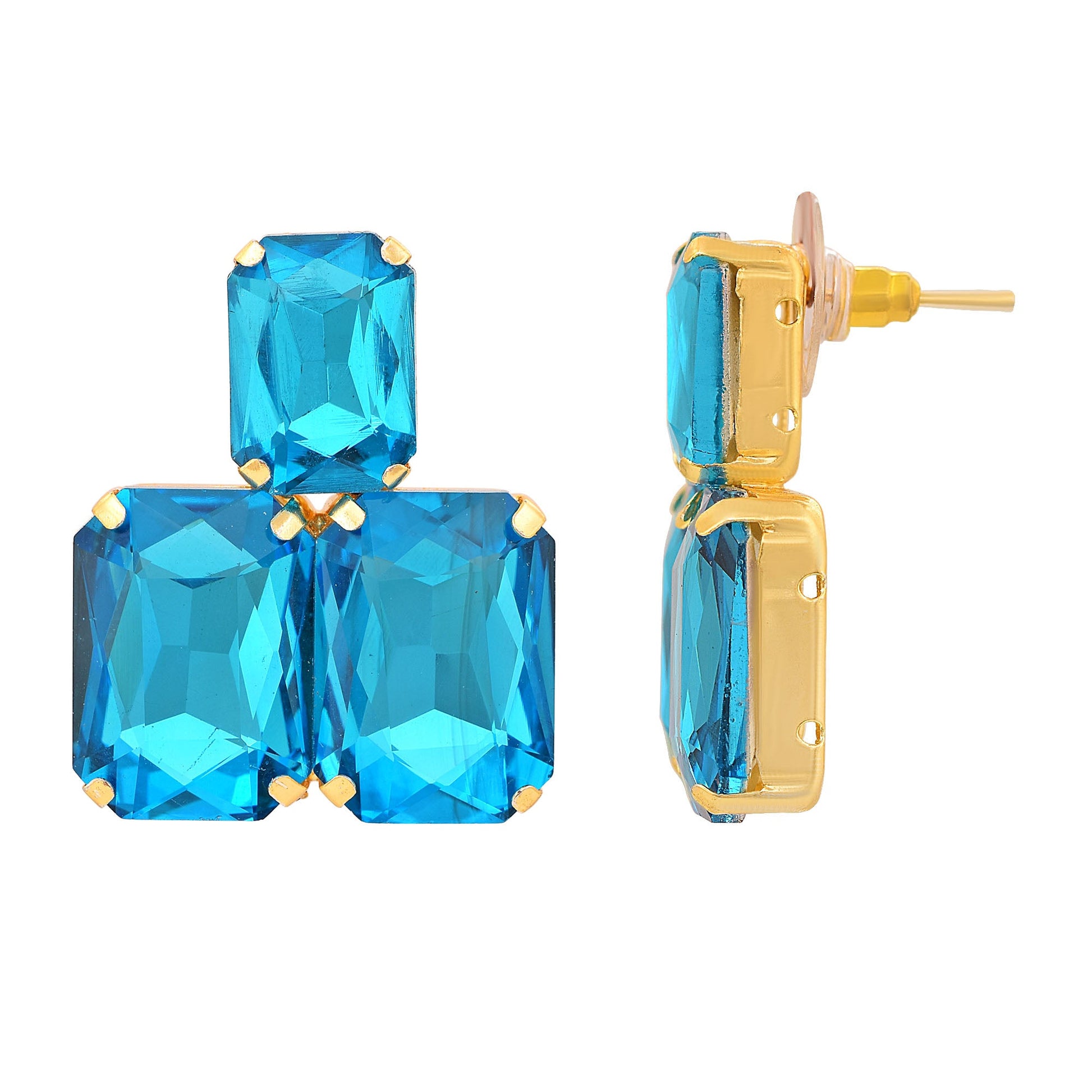Gold plated Sky Blue colour Three Octagon Fashion earring Women Latest