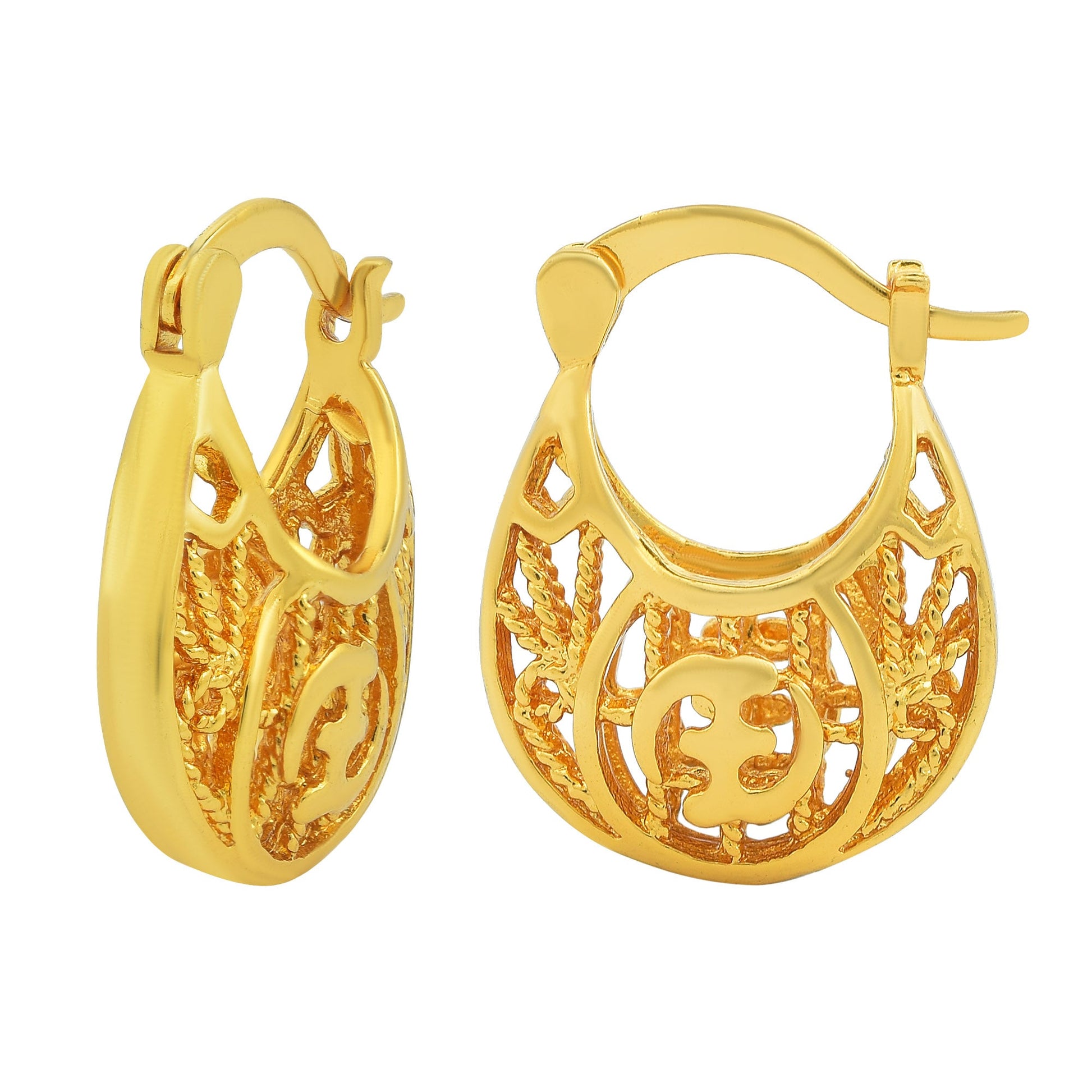Gold Plated Small size Simple sober handmade basket shape Bali Hoop earrings