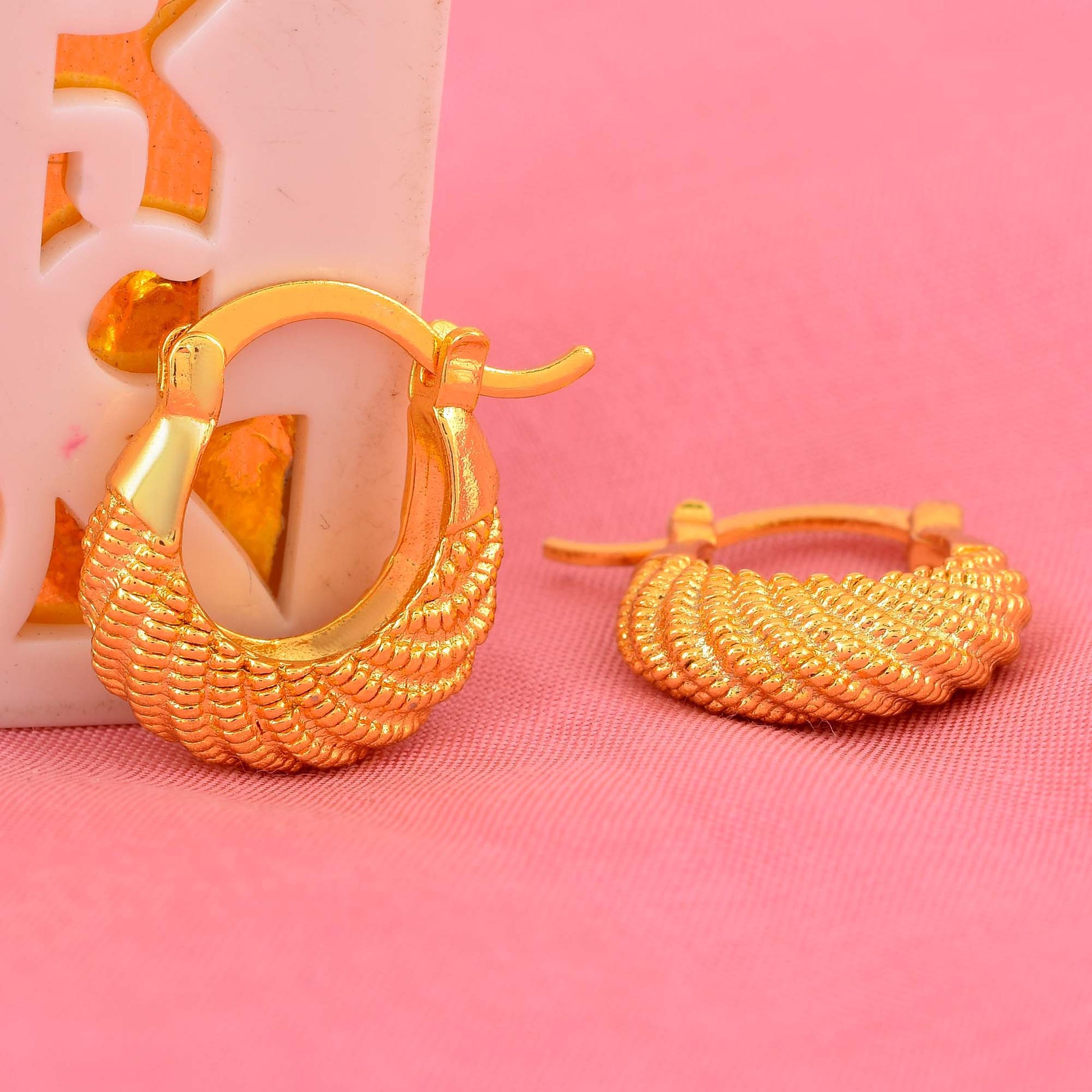 • Gold plated handmade tradiitonal design Basket shaped hoop earrings.