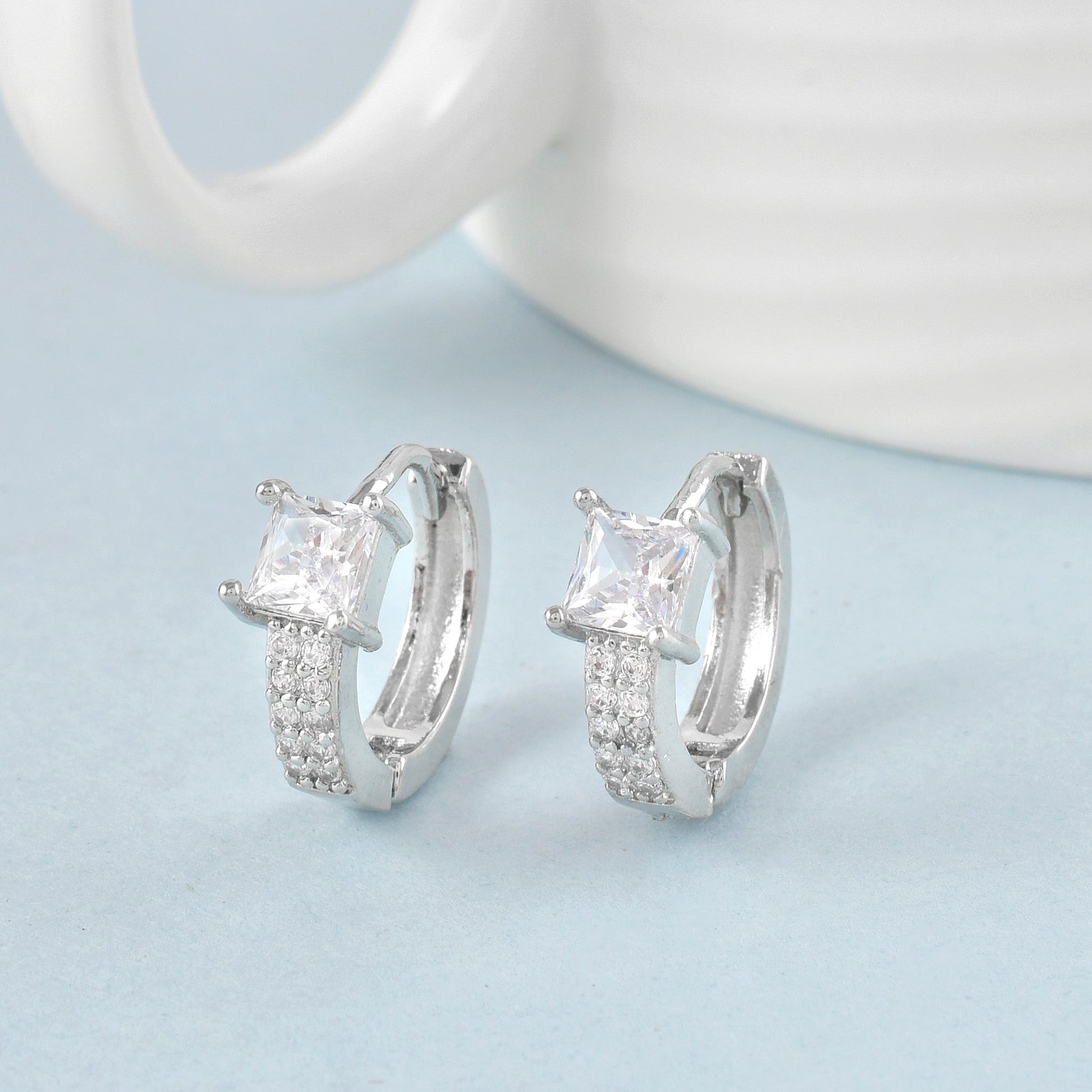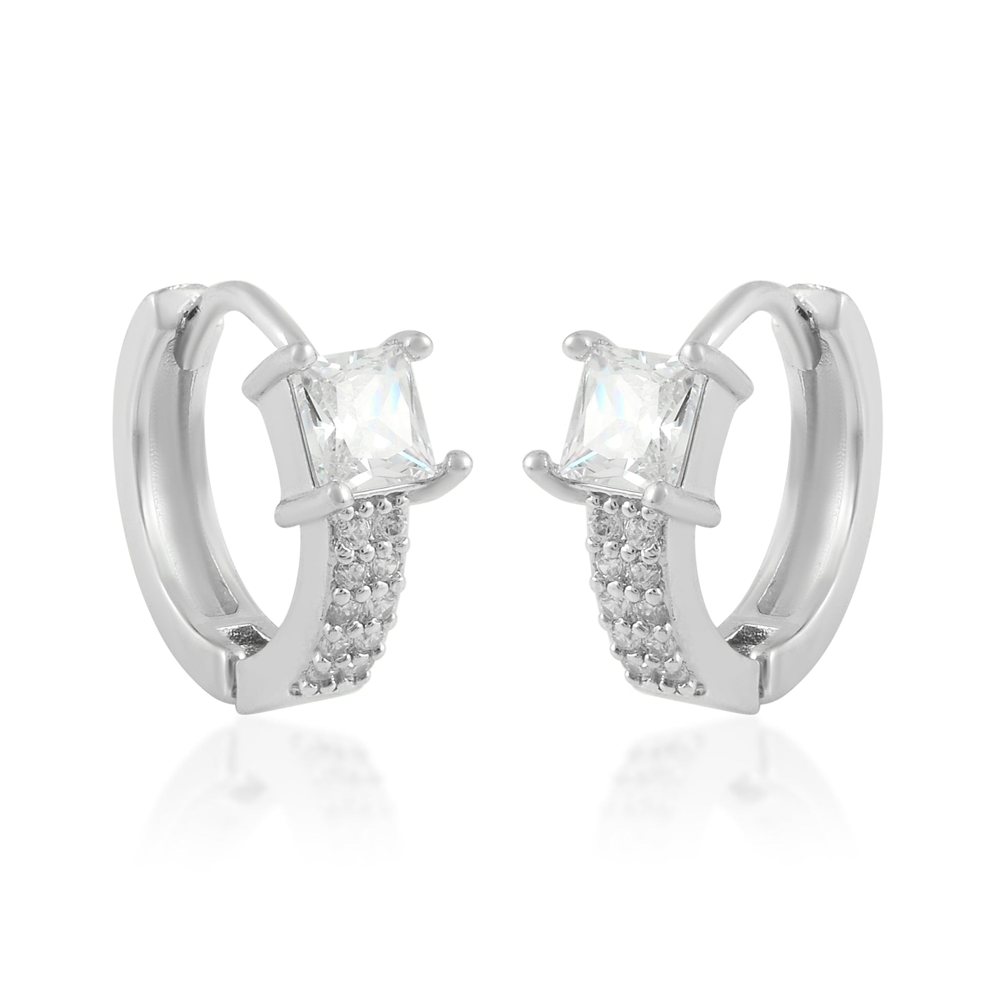 Brass Silverplated Imitation Diamonds Mini Hoop Fashion Earrings