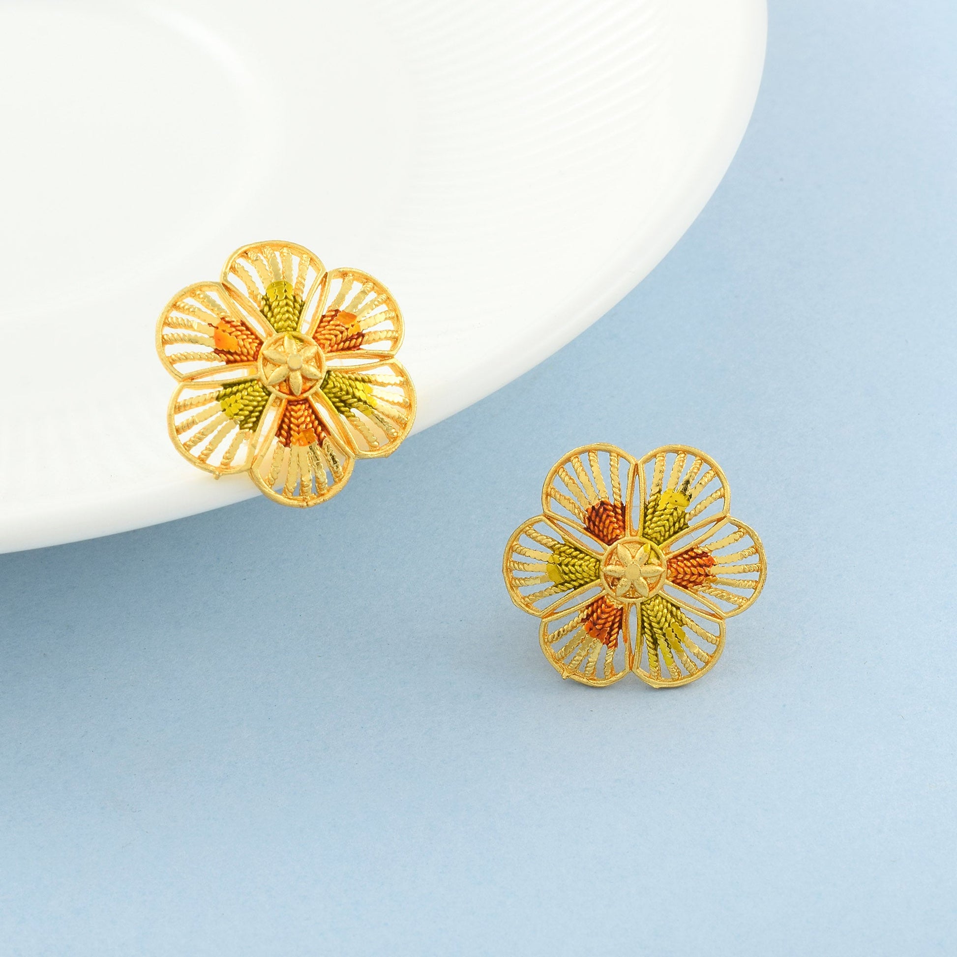 Brass Gold plated Handmade Floral design Fashion Women Stud Earrings