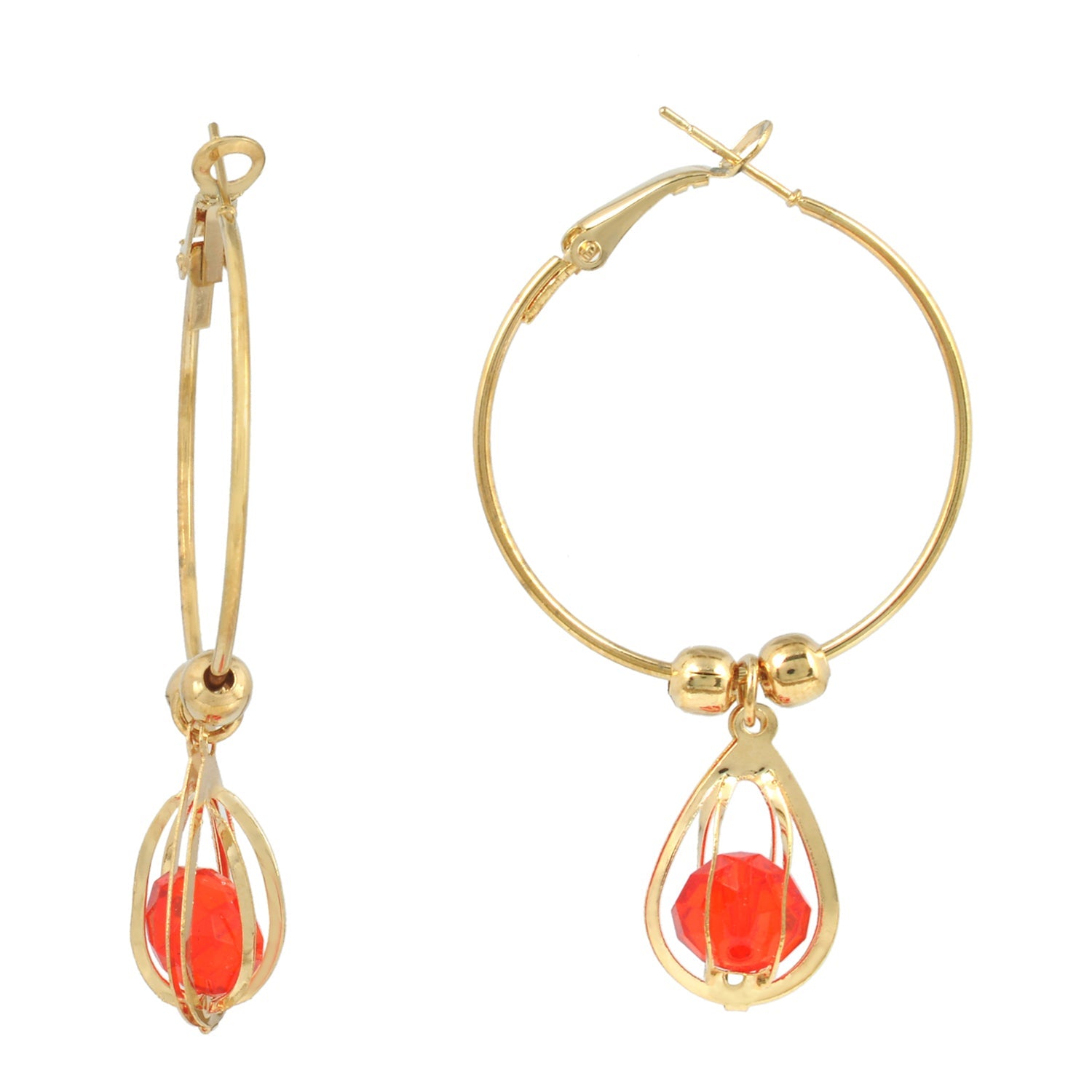 Oval cage Red CZ entrapped Gold plated Hoop Bali Earring