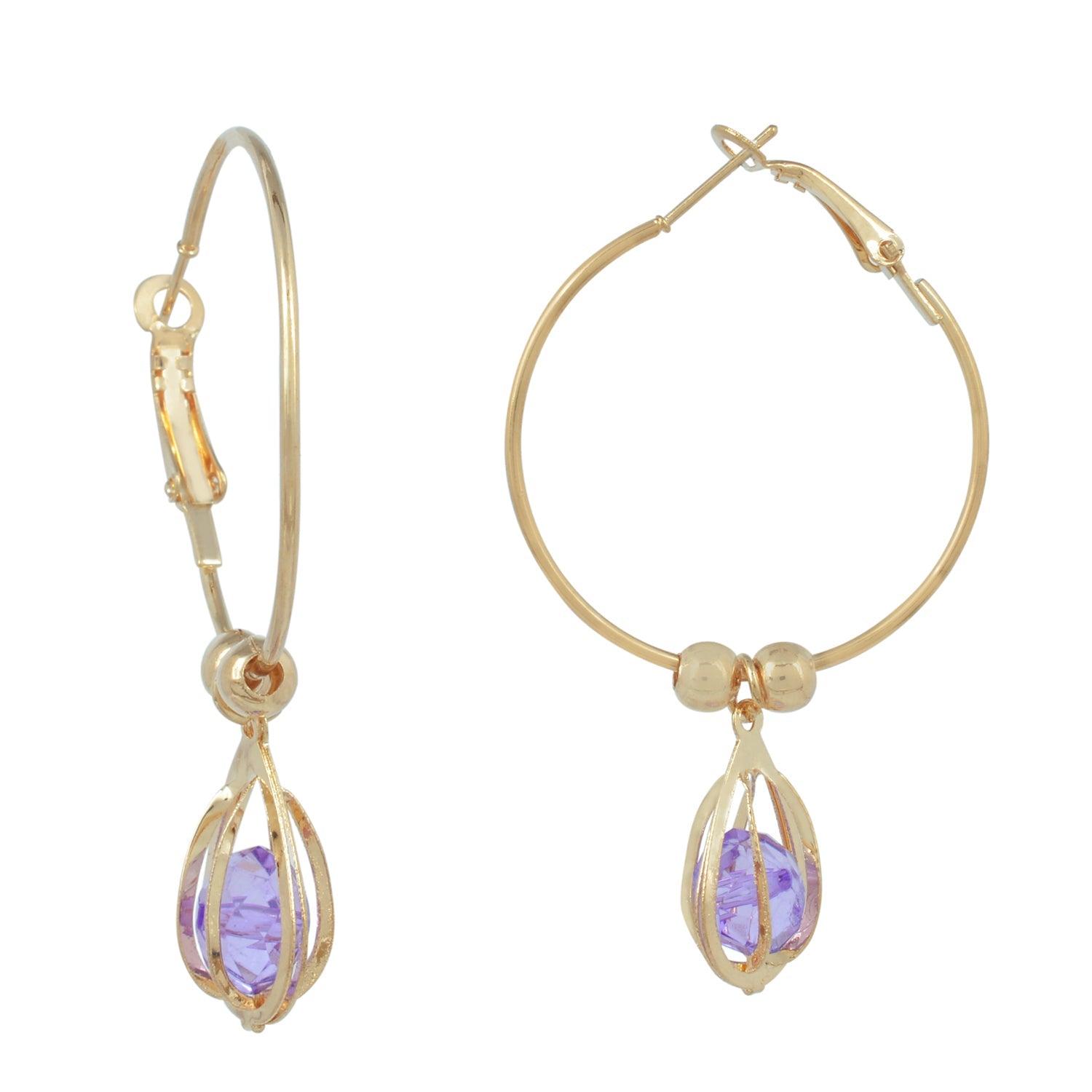 Oval cage Violet CZ entrapped Gold plated Hoop Bali Earring