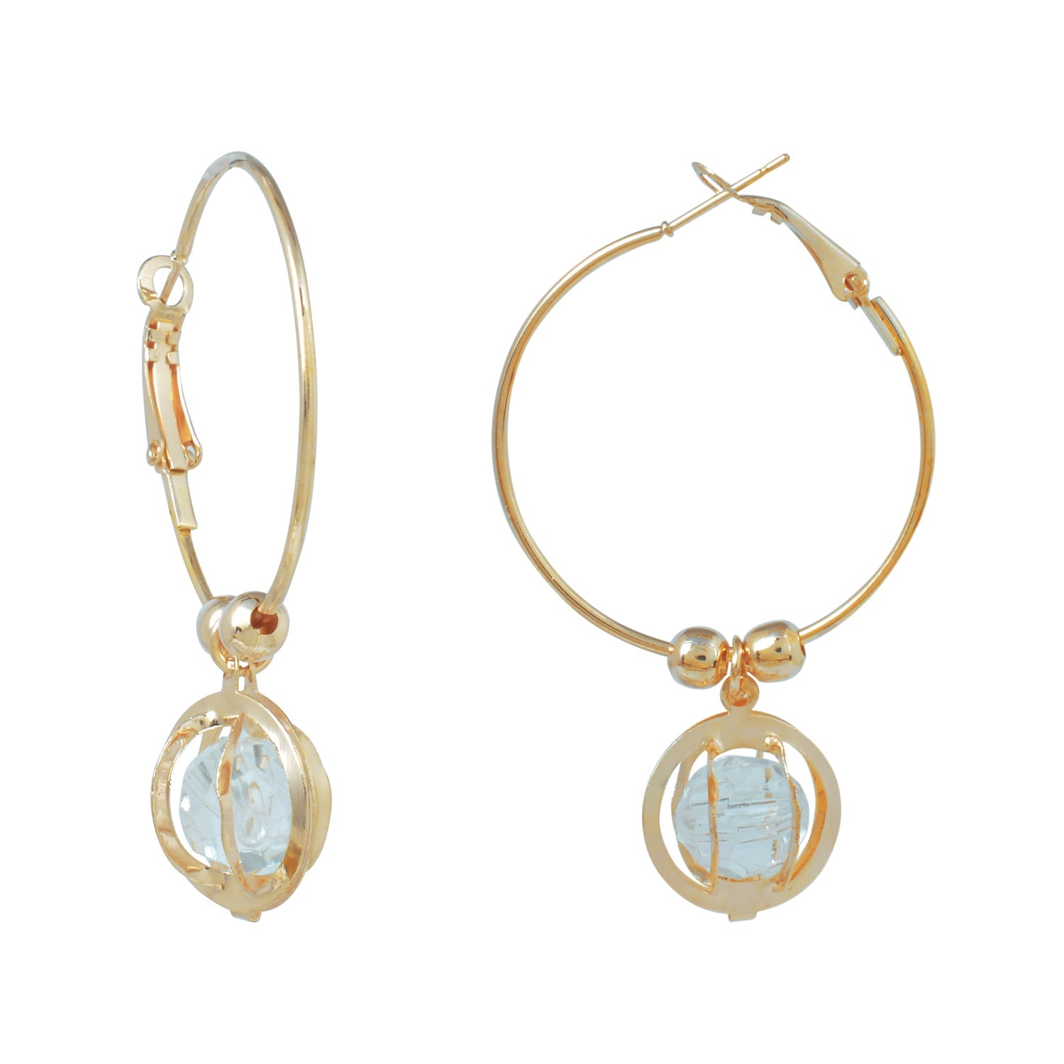 Round cage White CZ entrapped Rose Gold plated Hoop Bali Earring