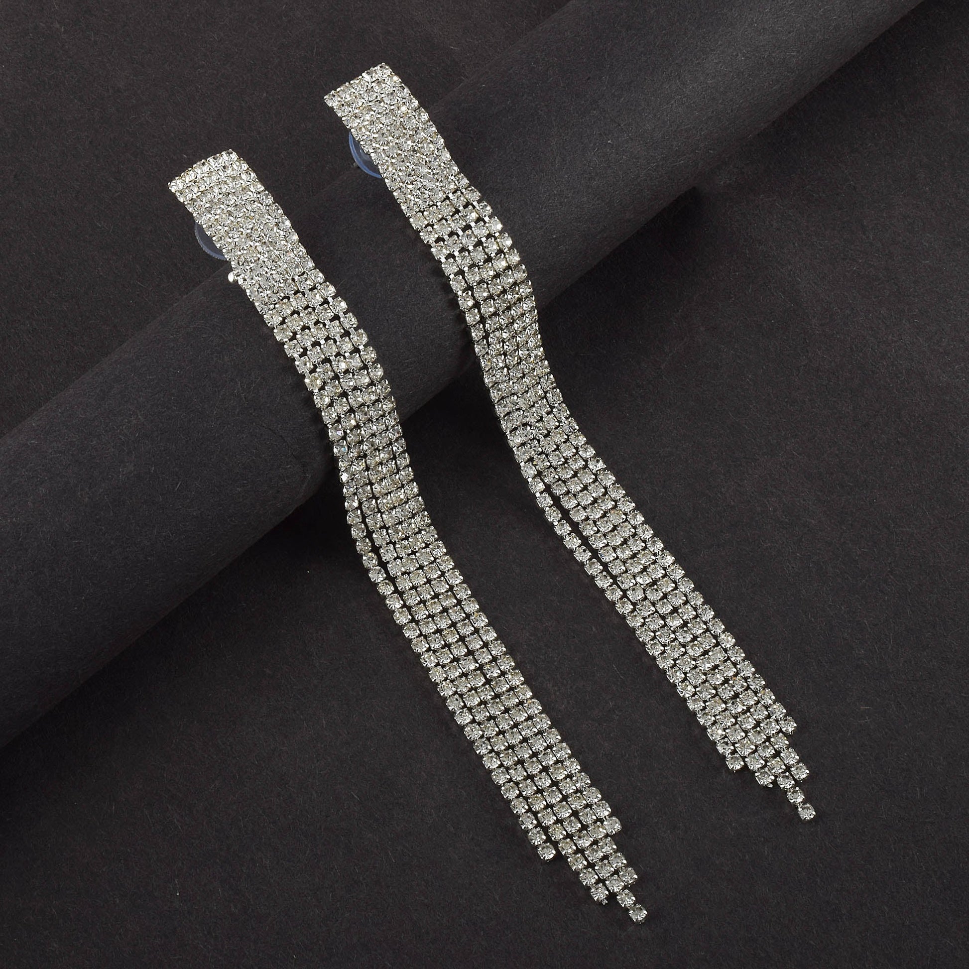 Silverplated Imitation Diamond Tassled Multistrand Dangler earrings