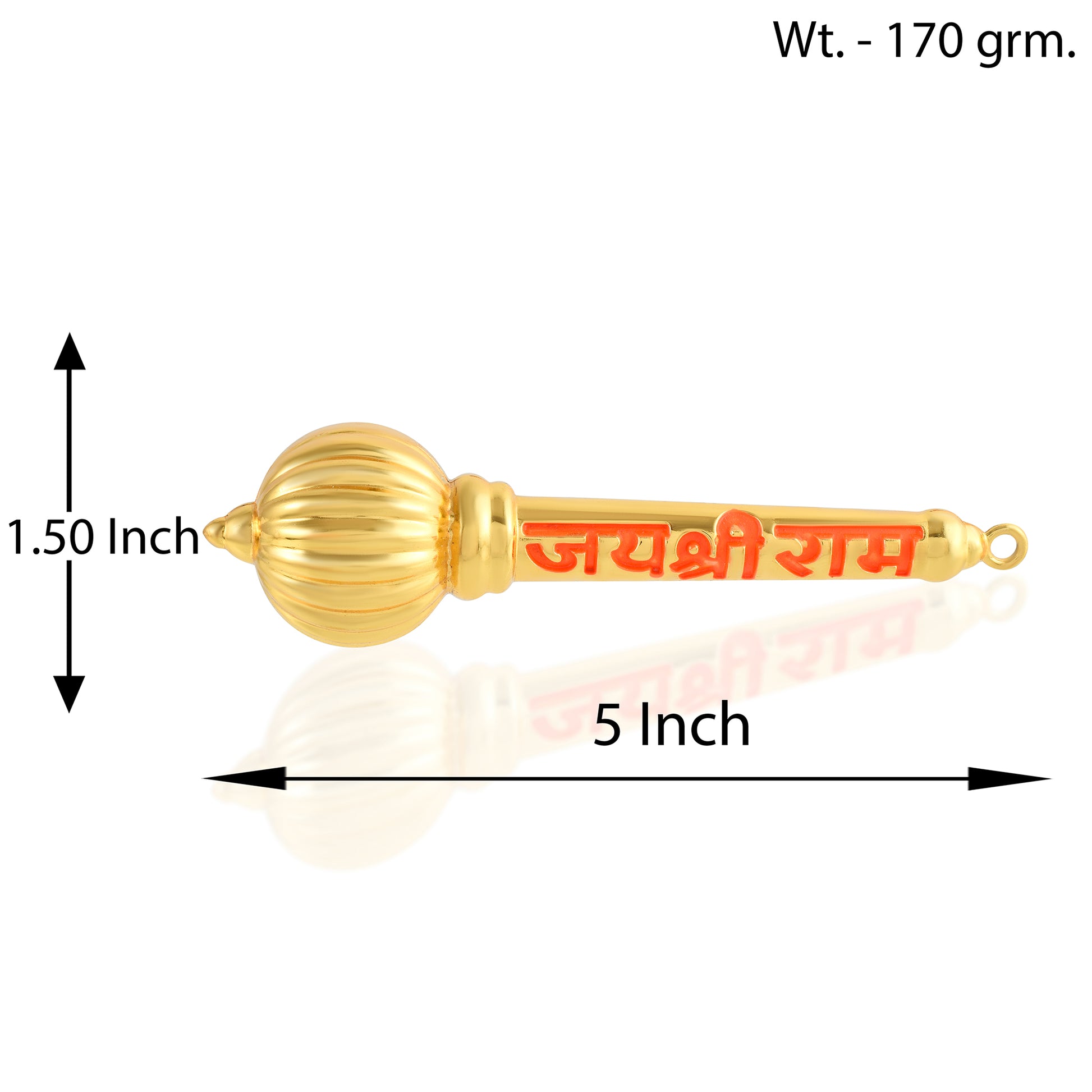 Brass Gold plated Heavy solid Hanuman Gada Mace miniature Hindu puja item (HDNI8297)