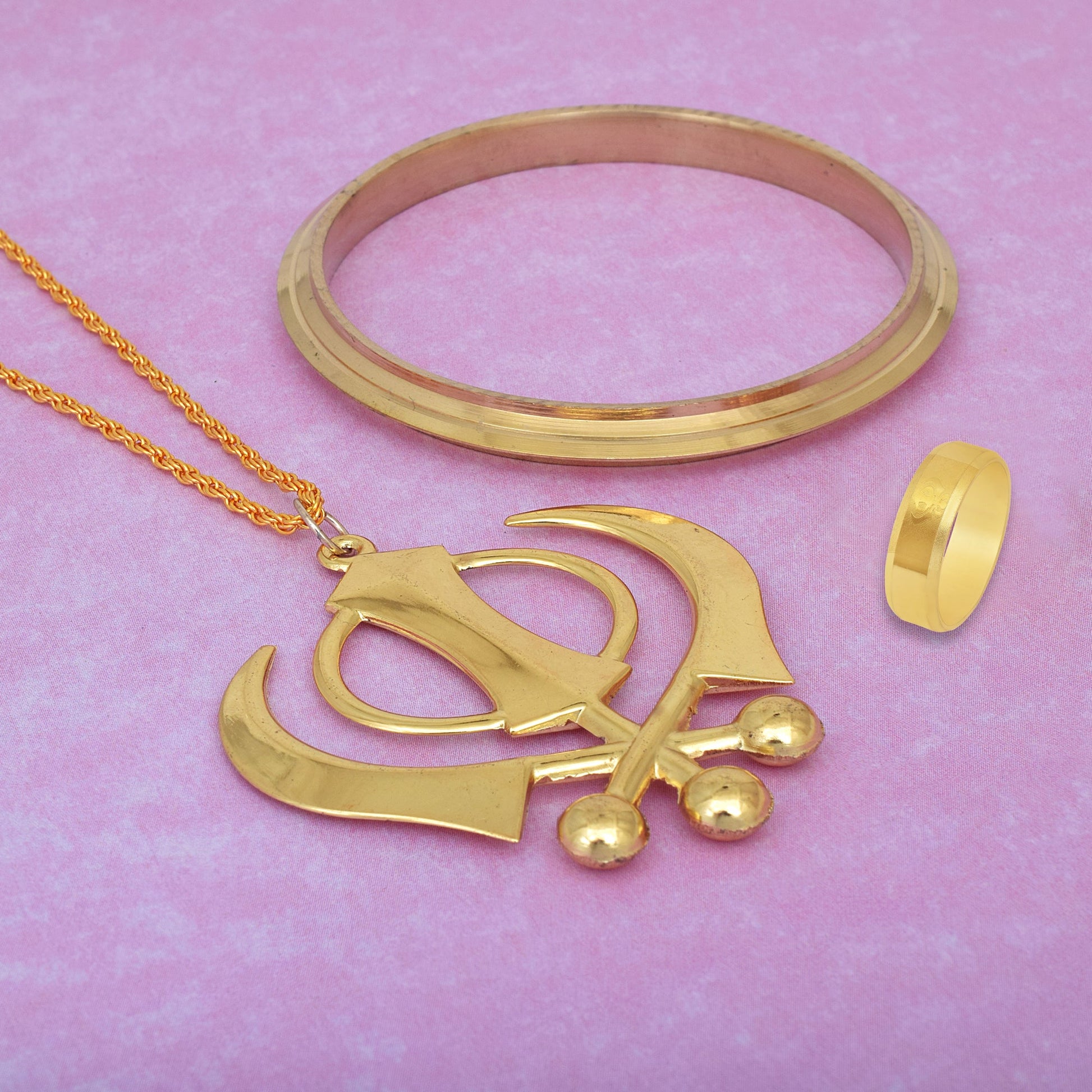 Brass Combo of Khanda pendant, Khanda ring, and Kada sikh sardar punjabi jewellery combo