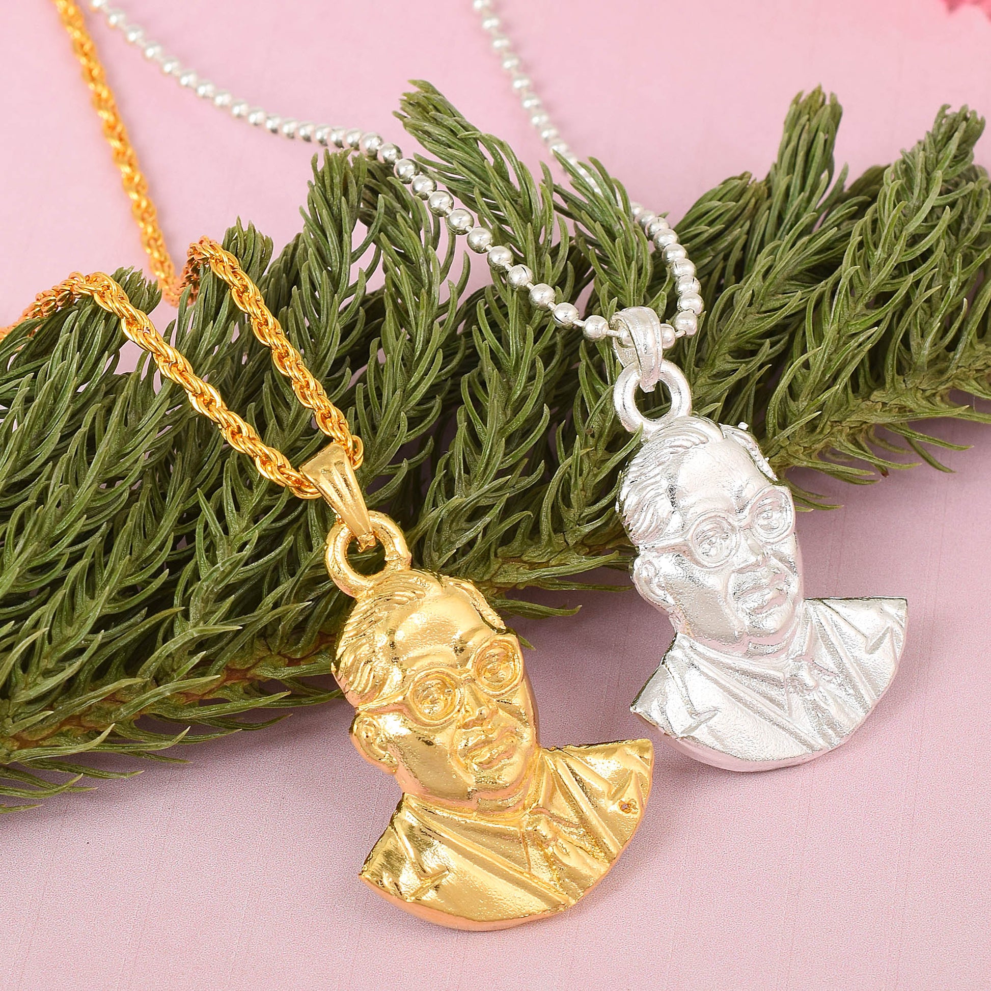 Brass Gold & Silverplated Combo of 2 Bhimrao Ambedkar chain pendant