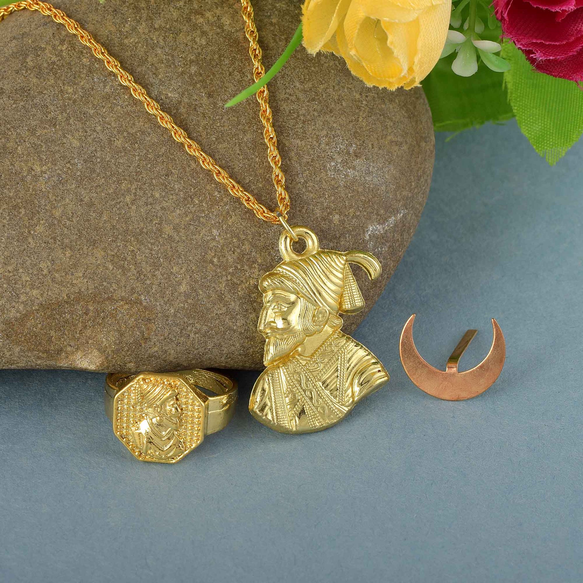 Brass Real Micron Goldplated Combo of Shivaji Pendant fingerring and Chandrakor