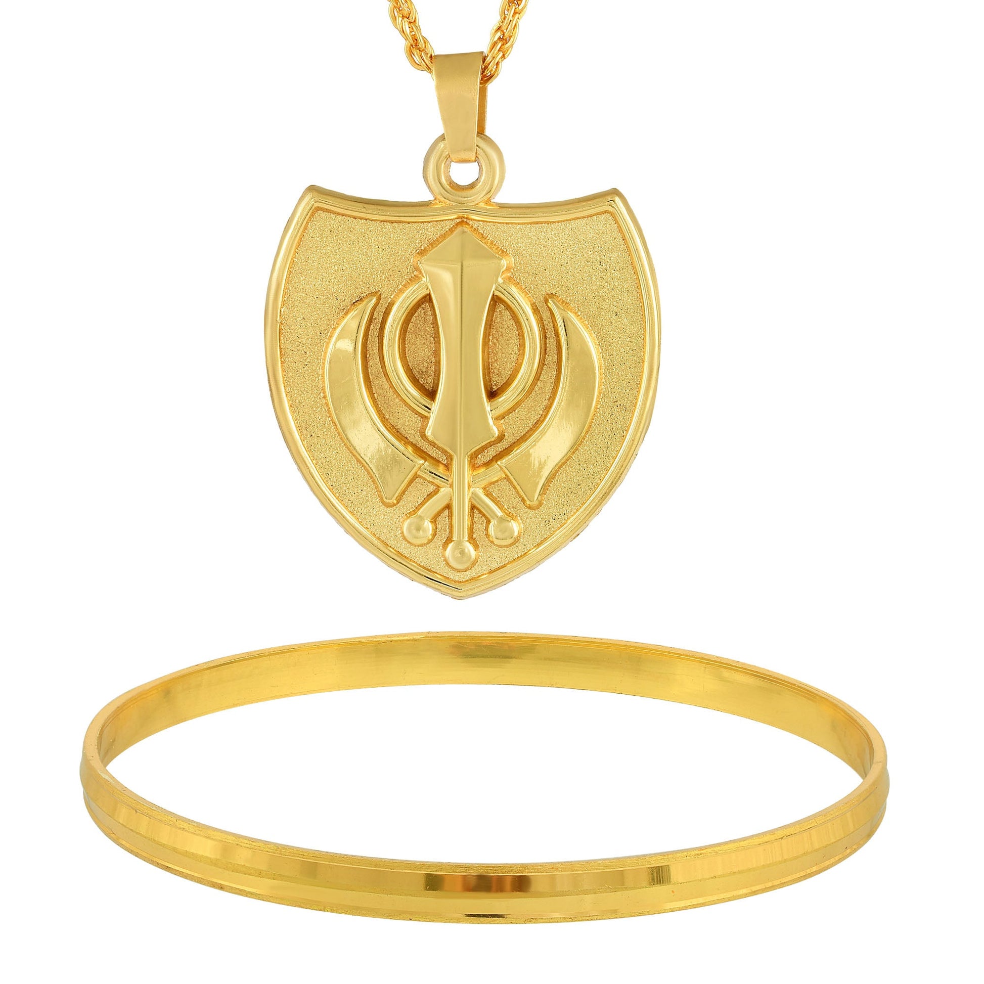 Gold plated Brass Combo of Kada and Khanda Pendant Khalsa, Sikh Sardar Panjabi