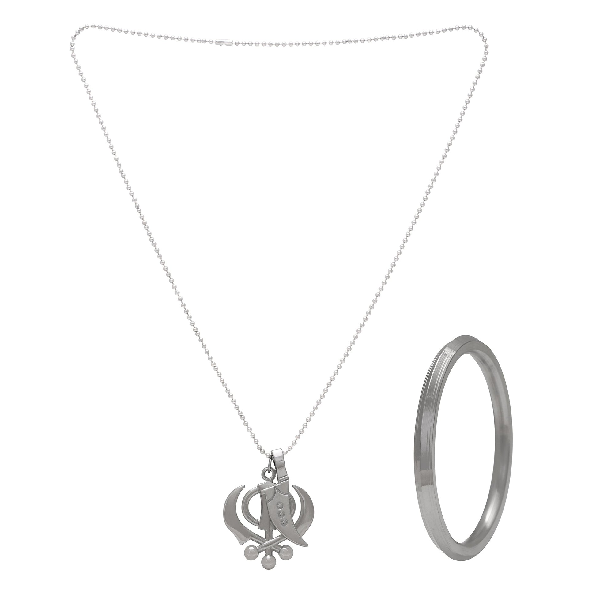 Stainless Steel Combo of Sikh Sardar Punjabi Khalsa Heavy Kada and Khanda Kirpan Pendant