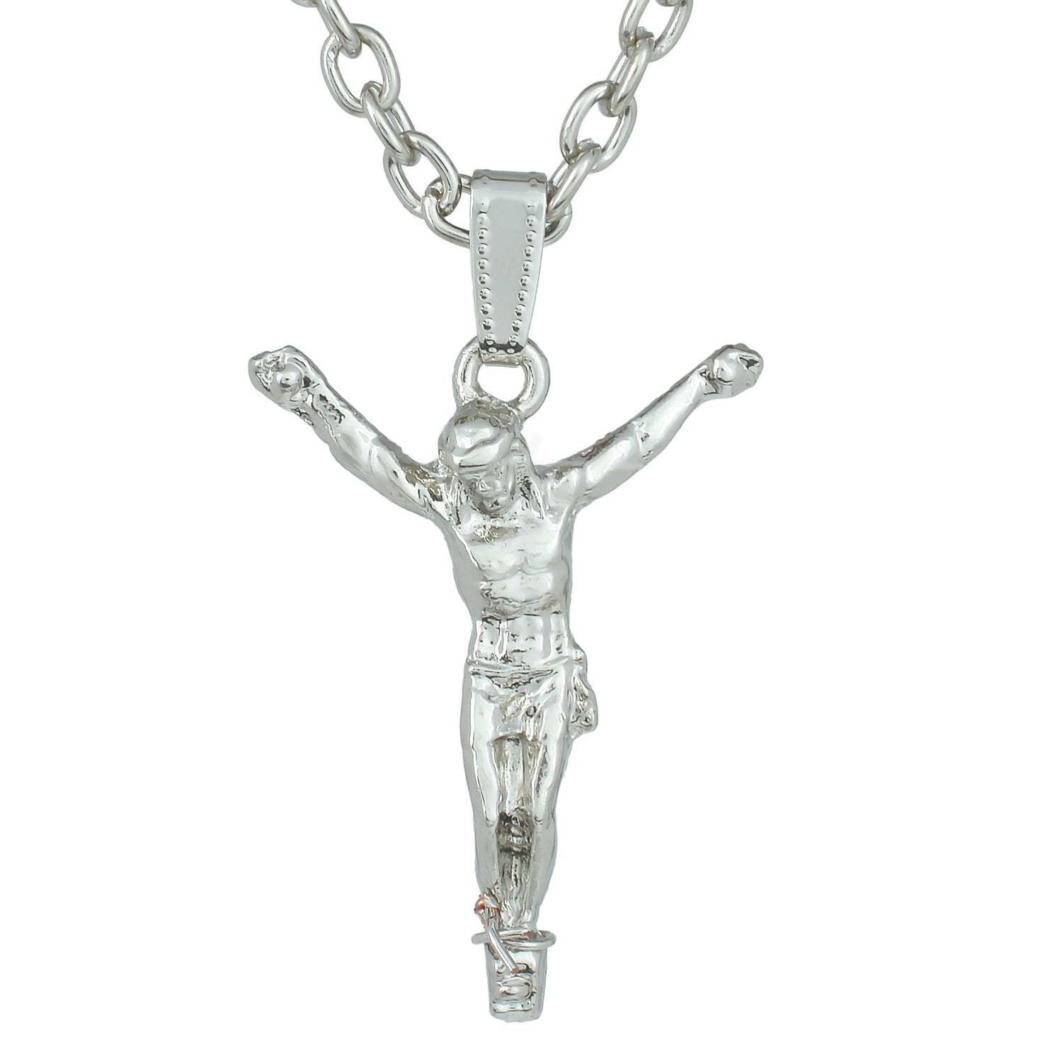 Silver plated Jesus Piece Anchor chain pendant necklace