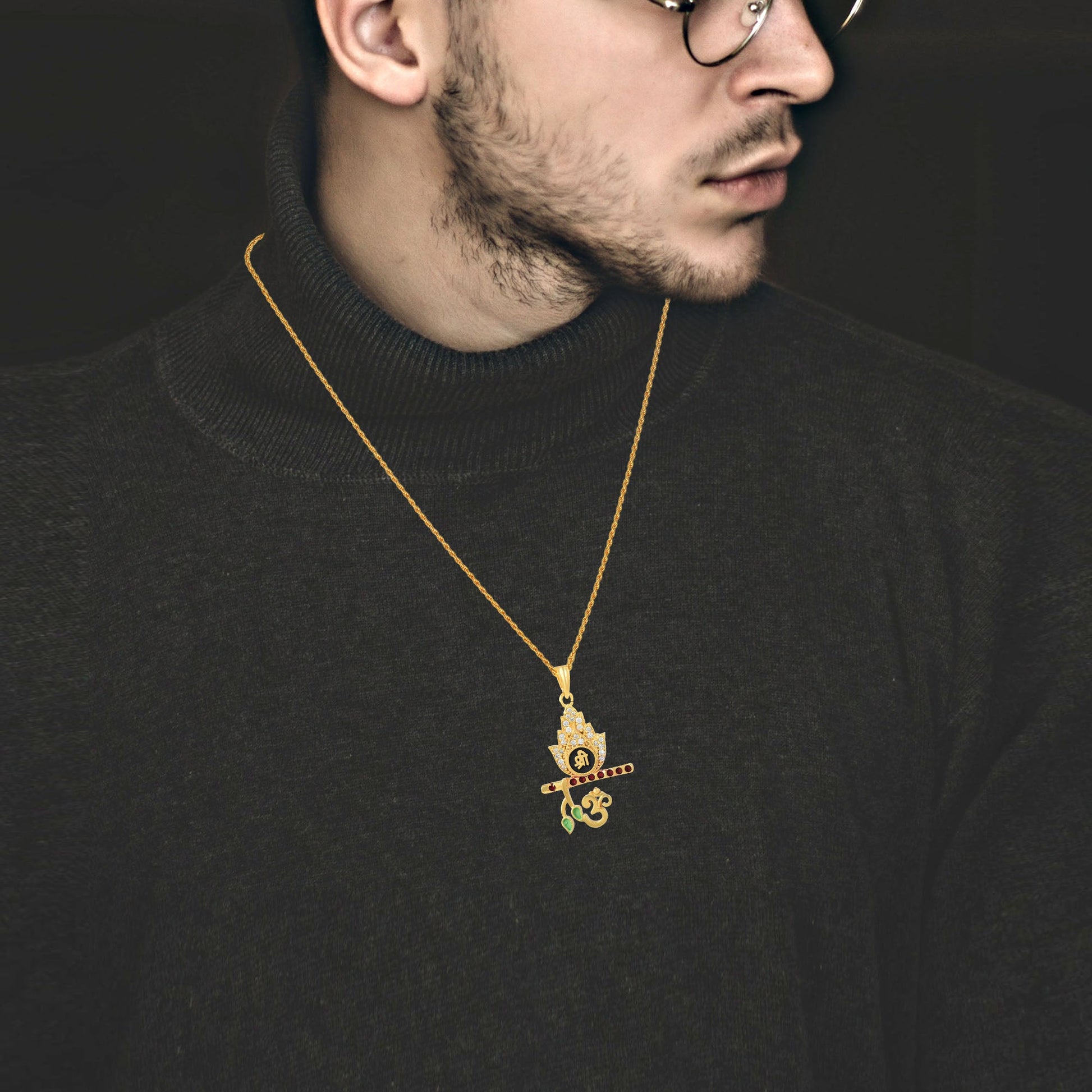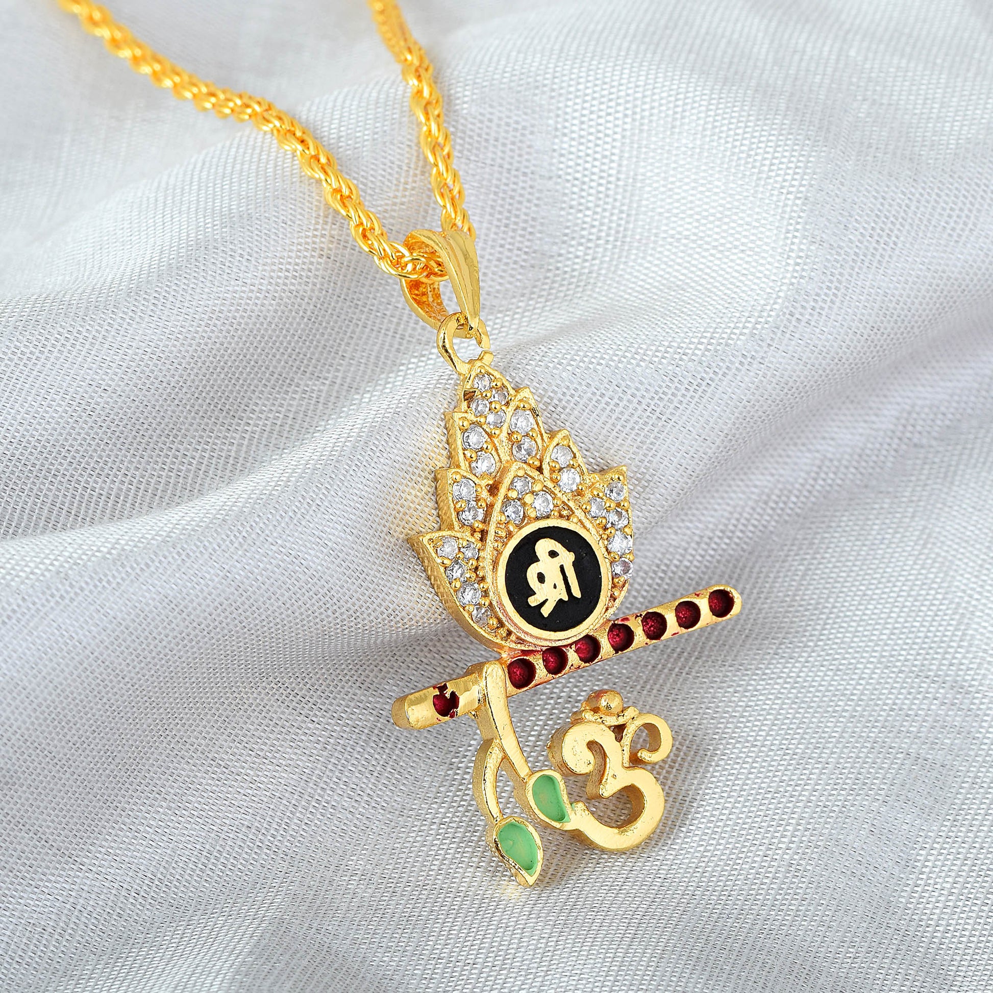 Brass Goldplated American Diamond Murli-Krishna Pendant