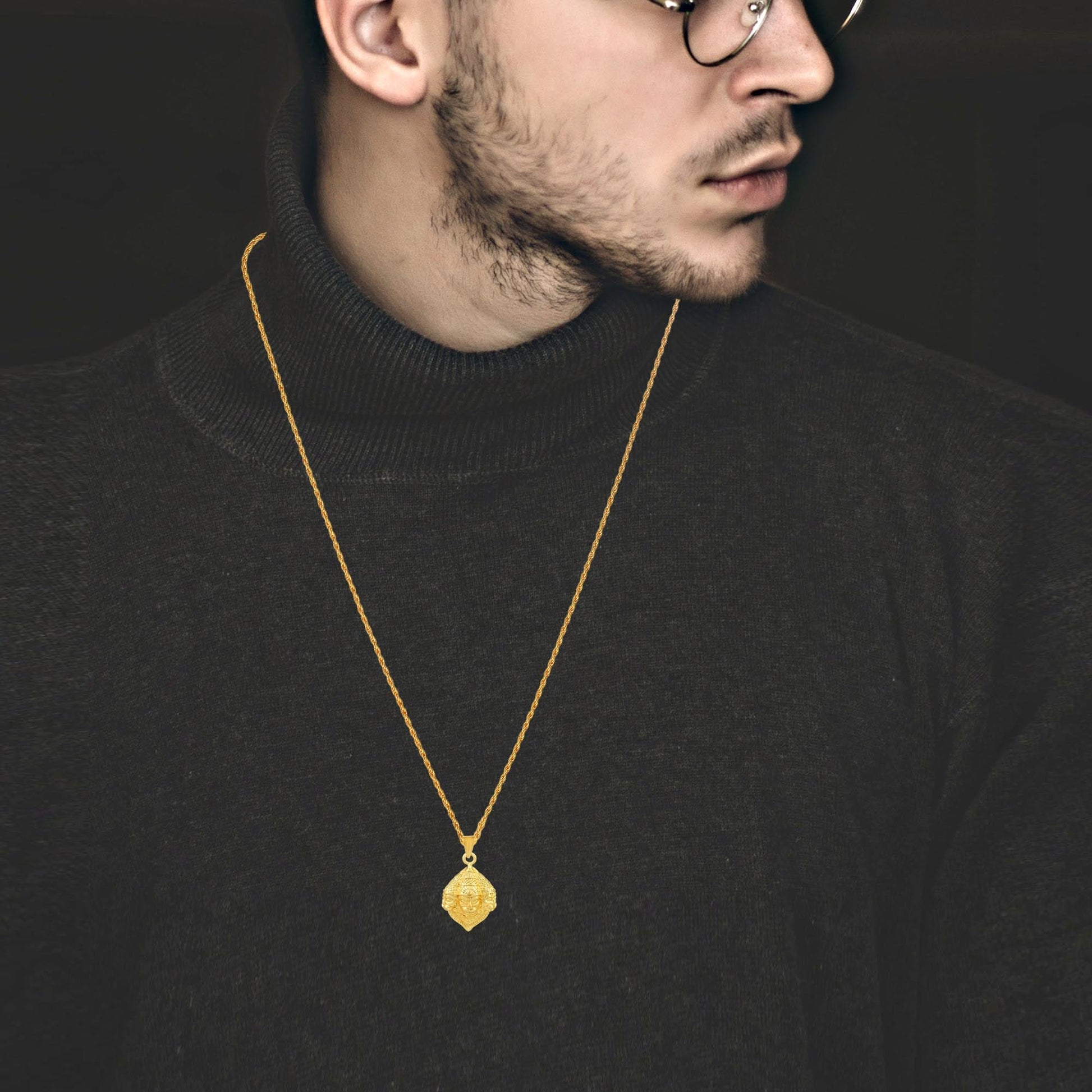 An excellent three face (Teen Mukhi) pendant of Lord Hanuman.Stylishly made, in Brass, and treated with real Gold polish to make it look stylish and attractive. A very good chain pendant for all purposes. A very good item for gifting purposes also, at any occasion, and to any age group.