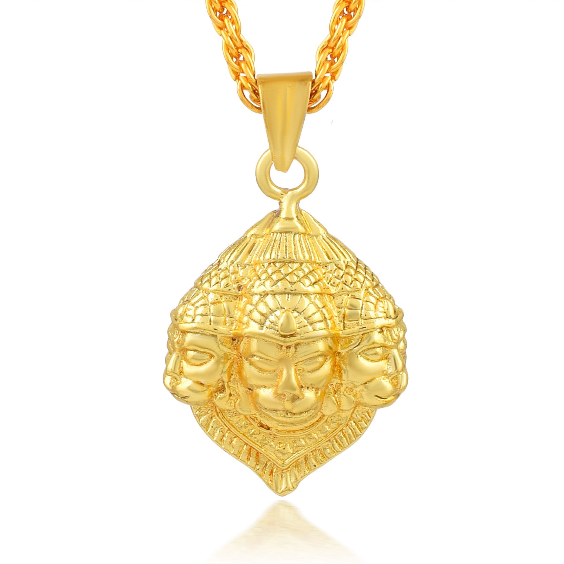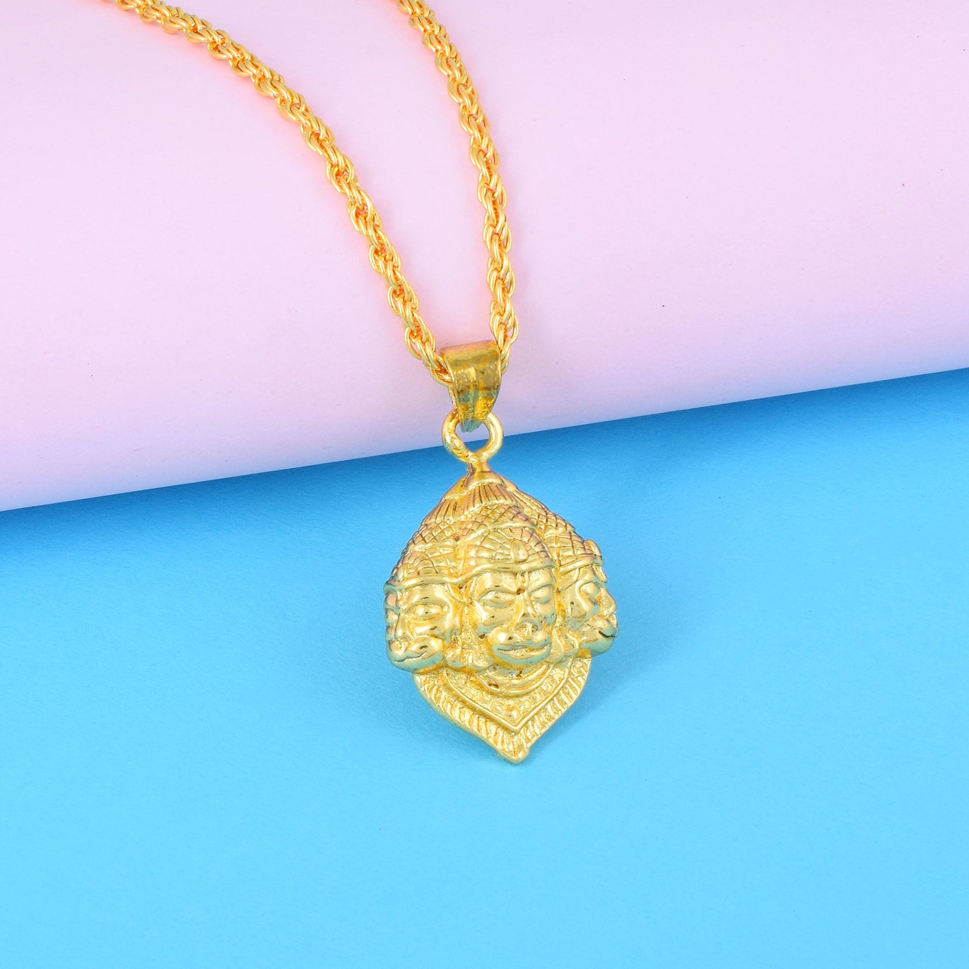 Brass Goldplated Bajrang Bali Teen-Mukhi Hanuman Pendant