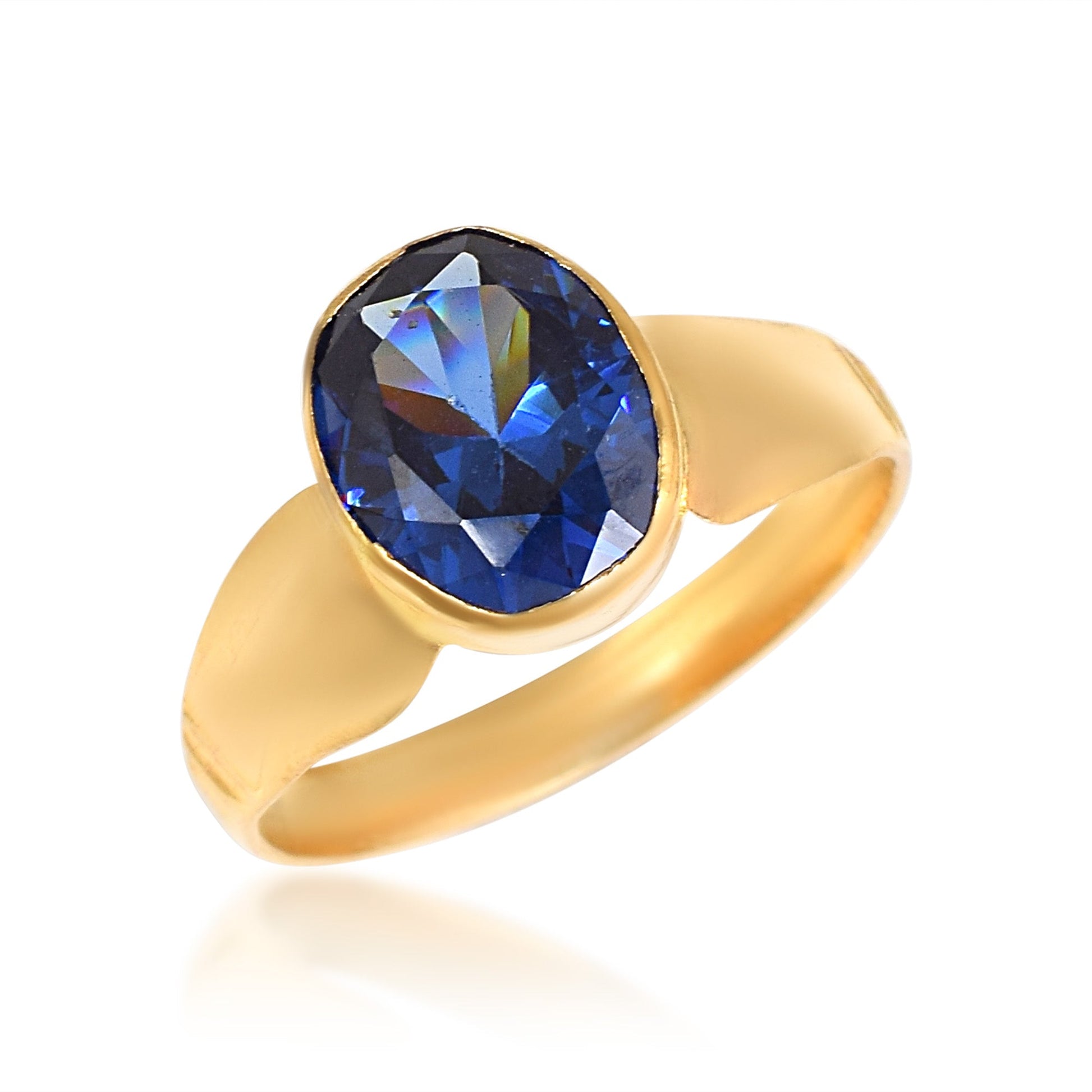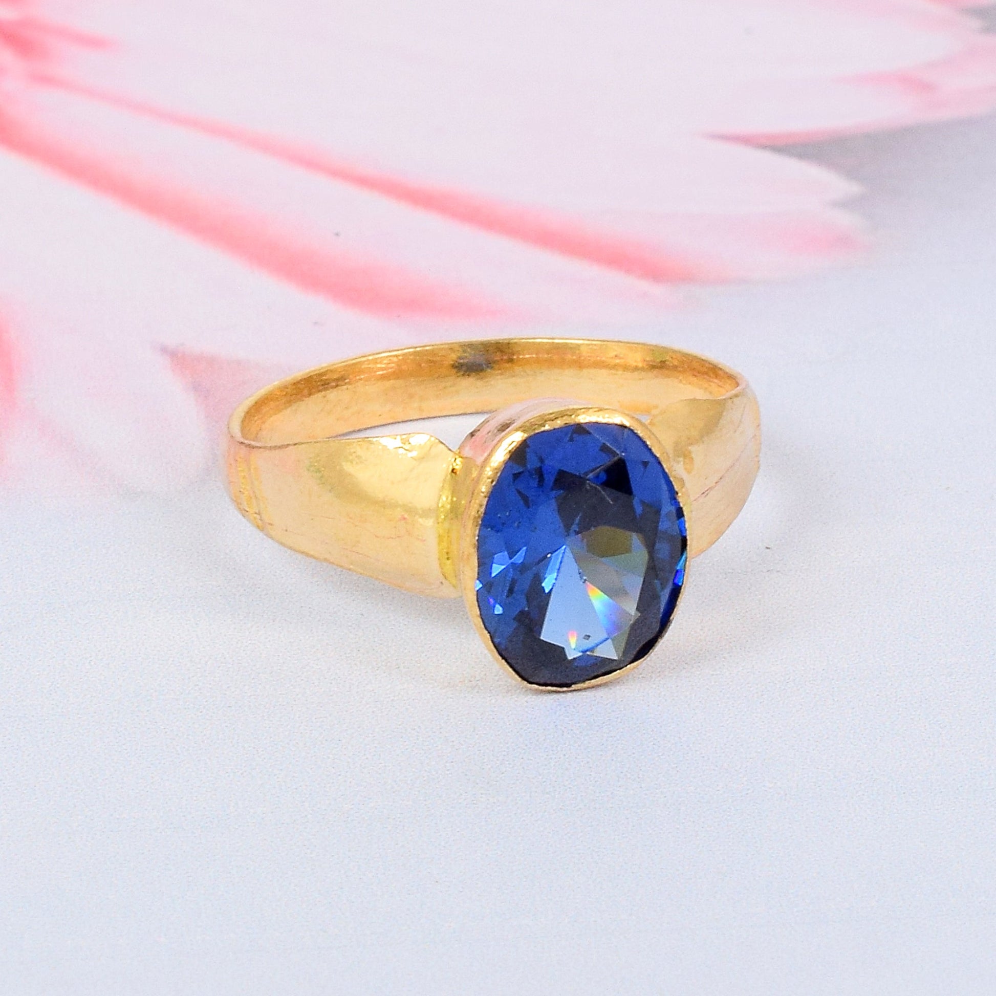 Brass Goldplated Faux Blue Sapphire Neelam finger ring