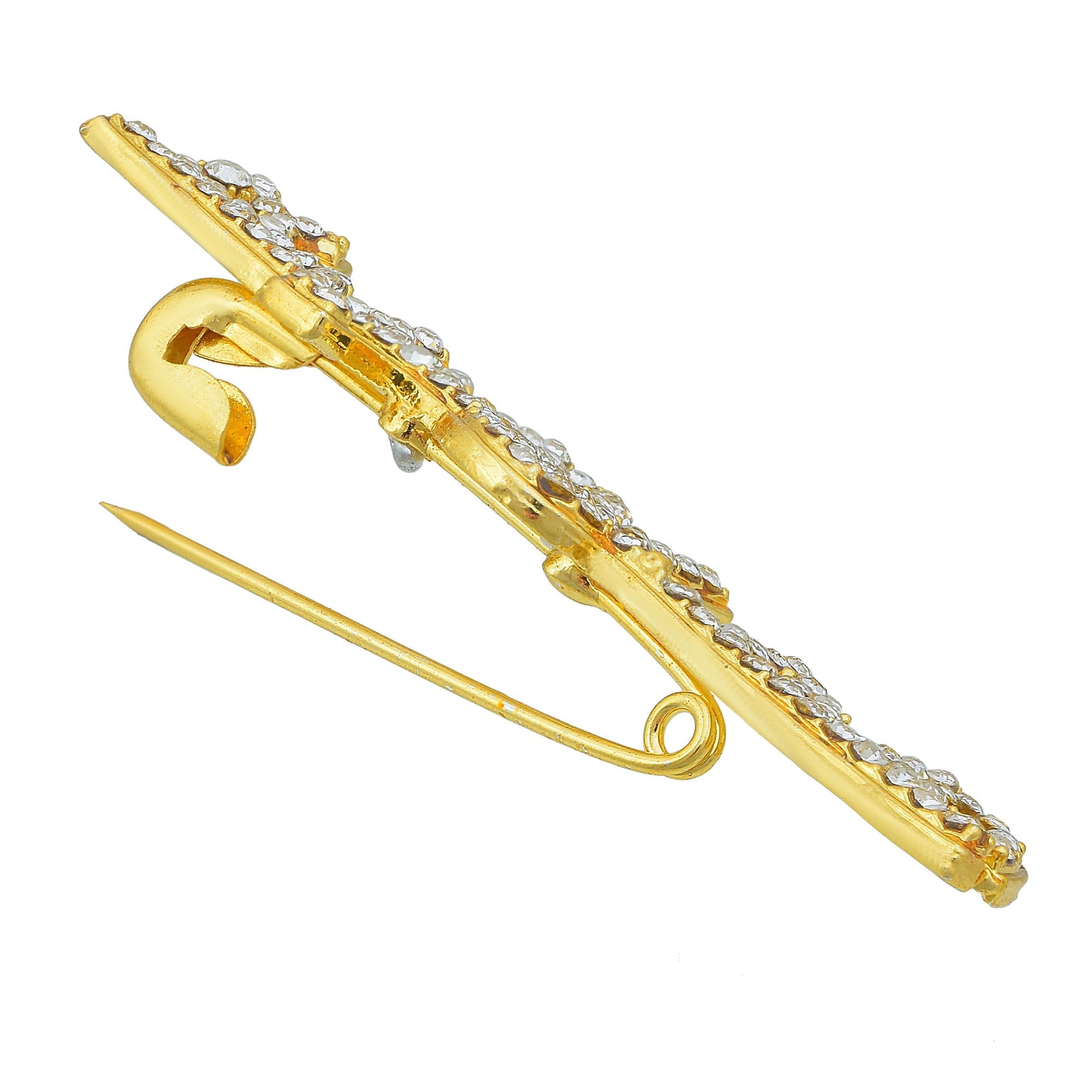 Gold plated CZ studded "Jai Jinendra" jain saree pin brooch (SPKL7508)