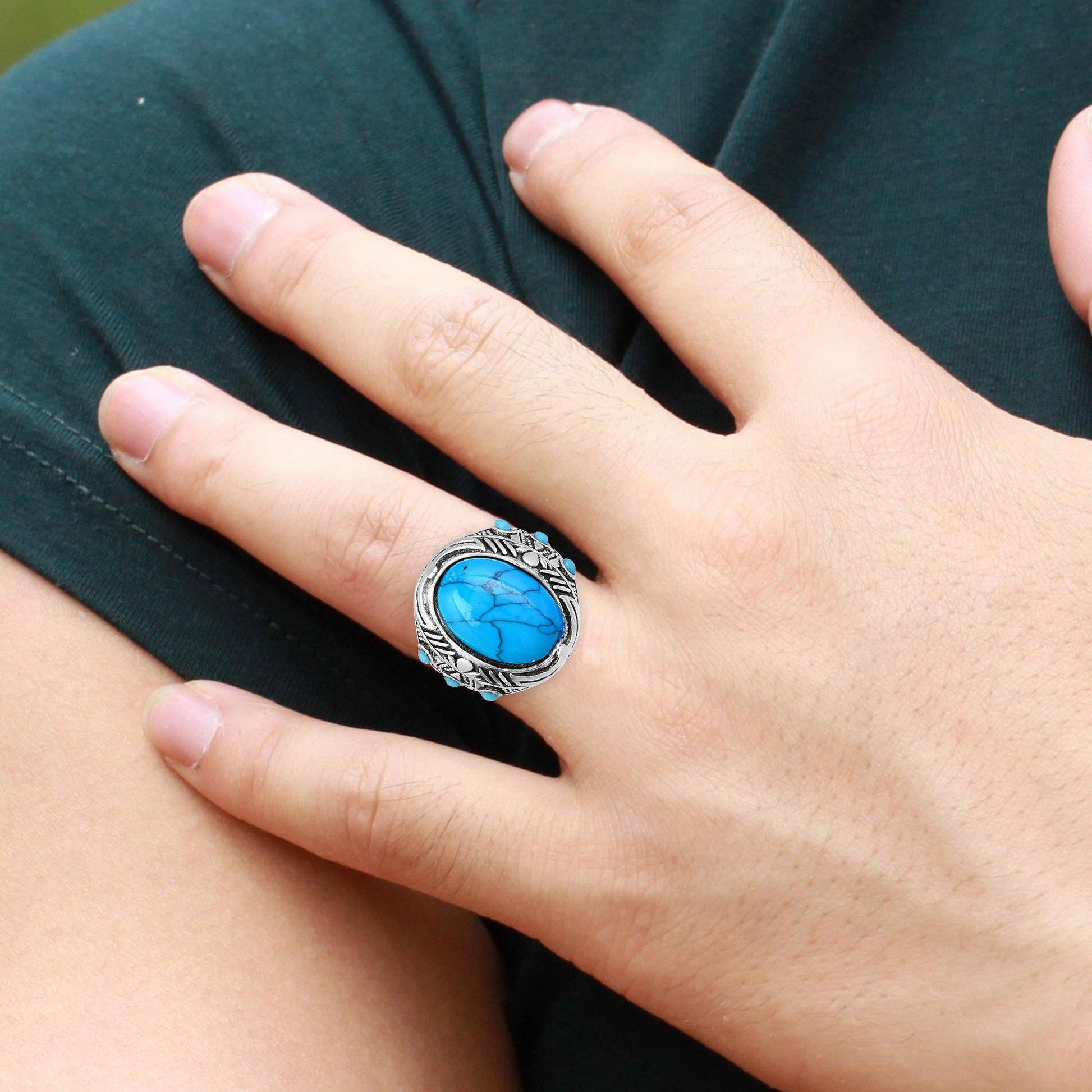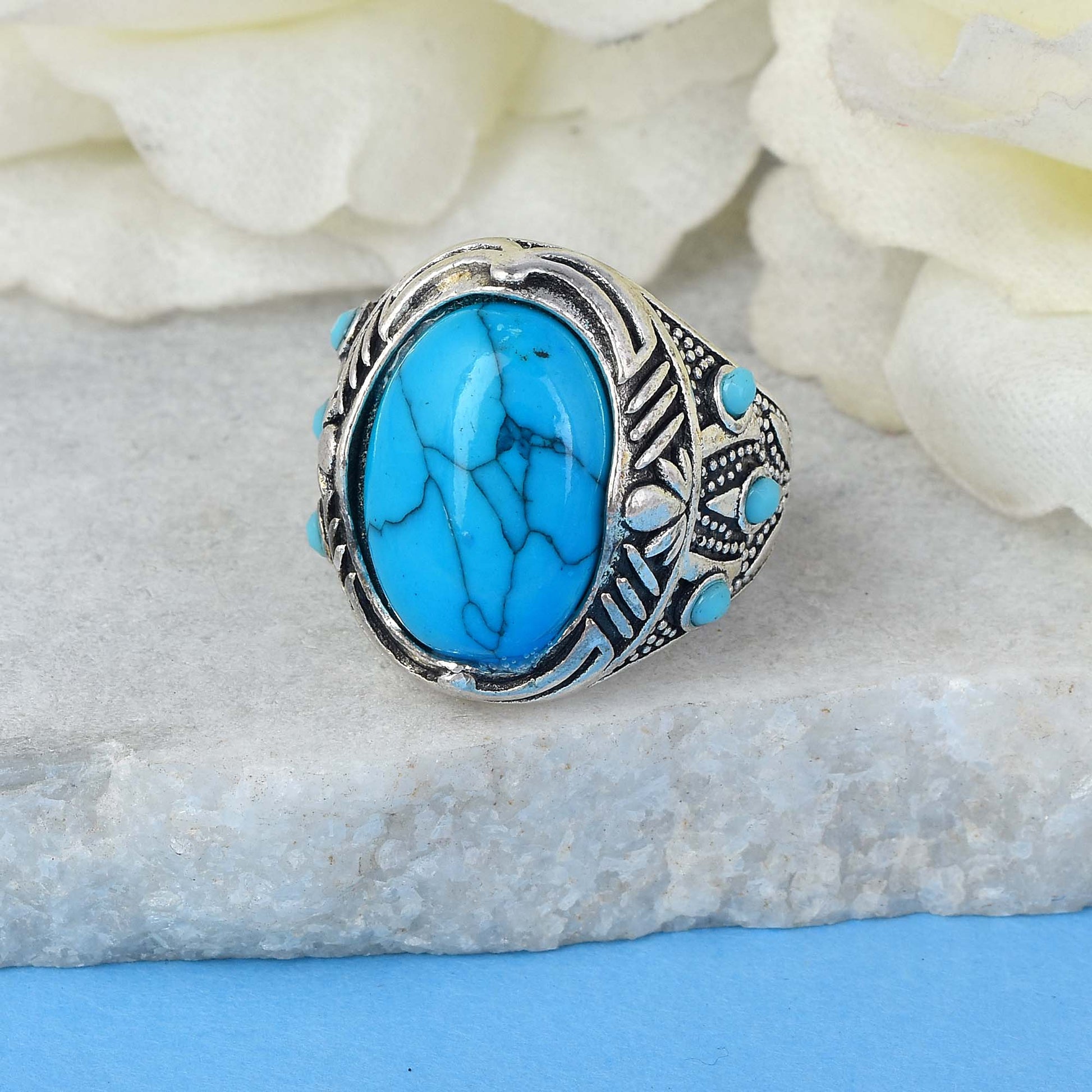 Silver Plated Antique Finish Faux Turquoise (Firoza) Finger Ring
