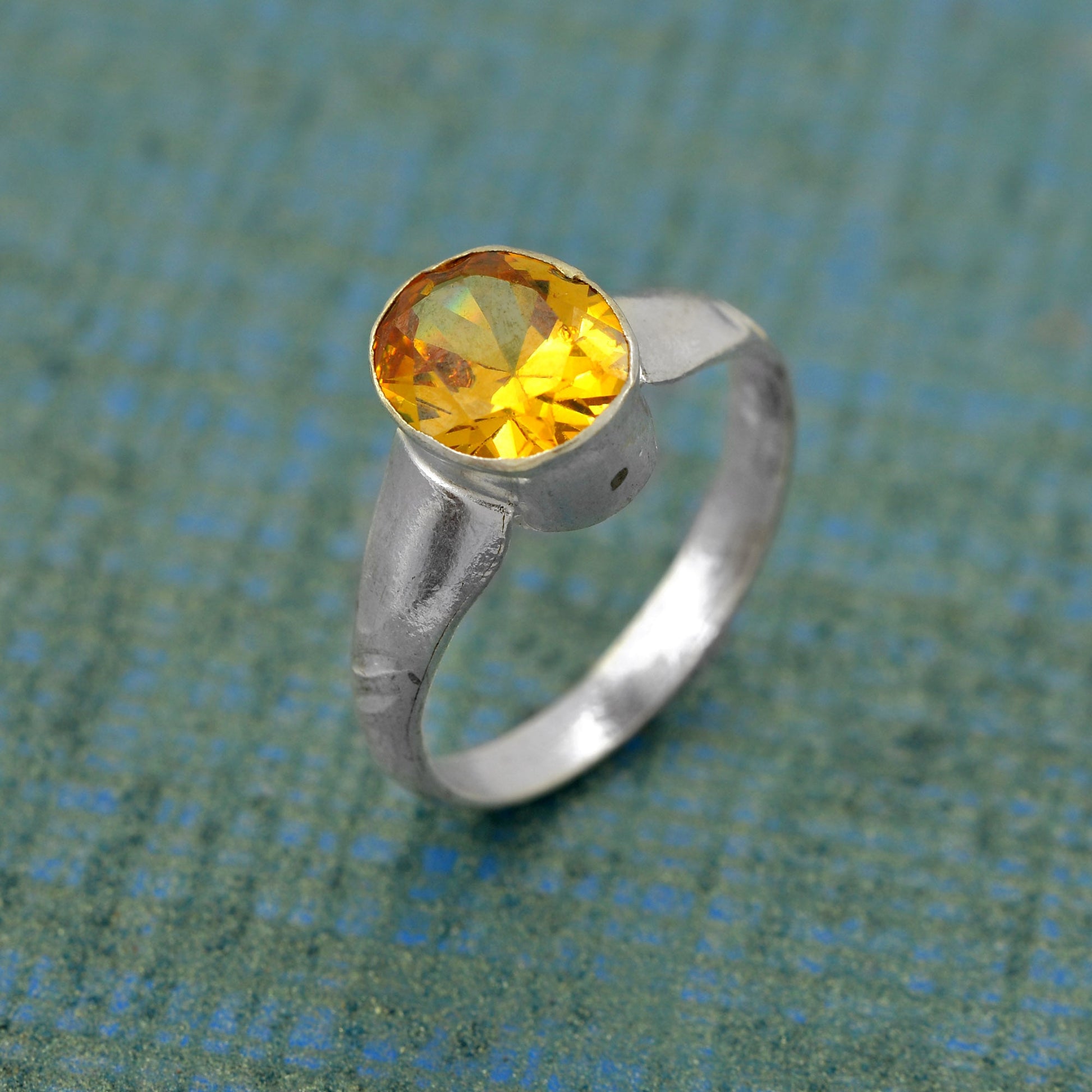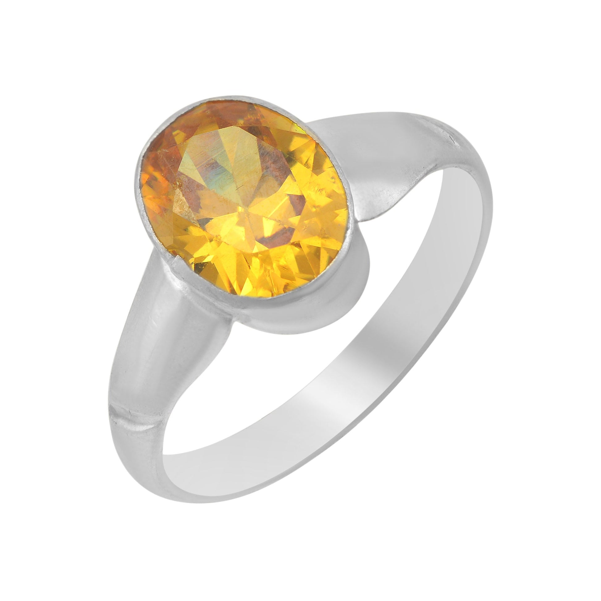 Silver plated Faux Yellow Sapphire / Pukhraj finger ring