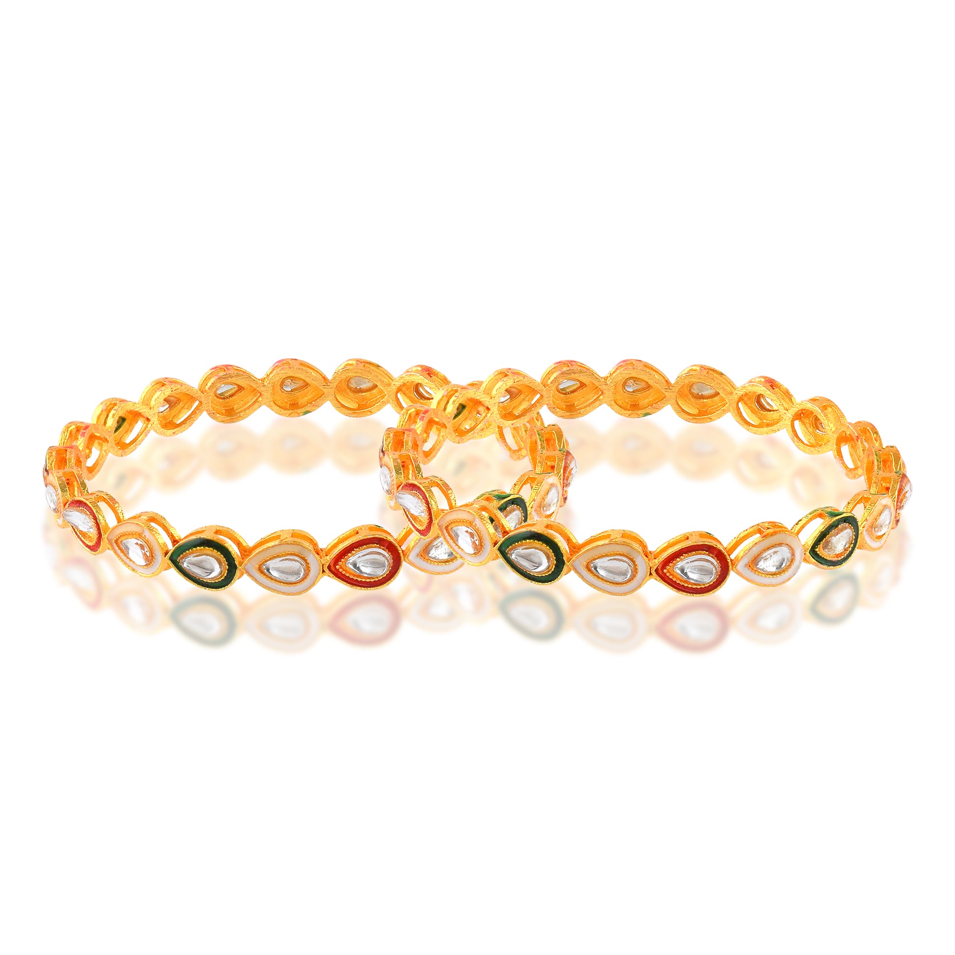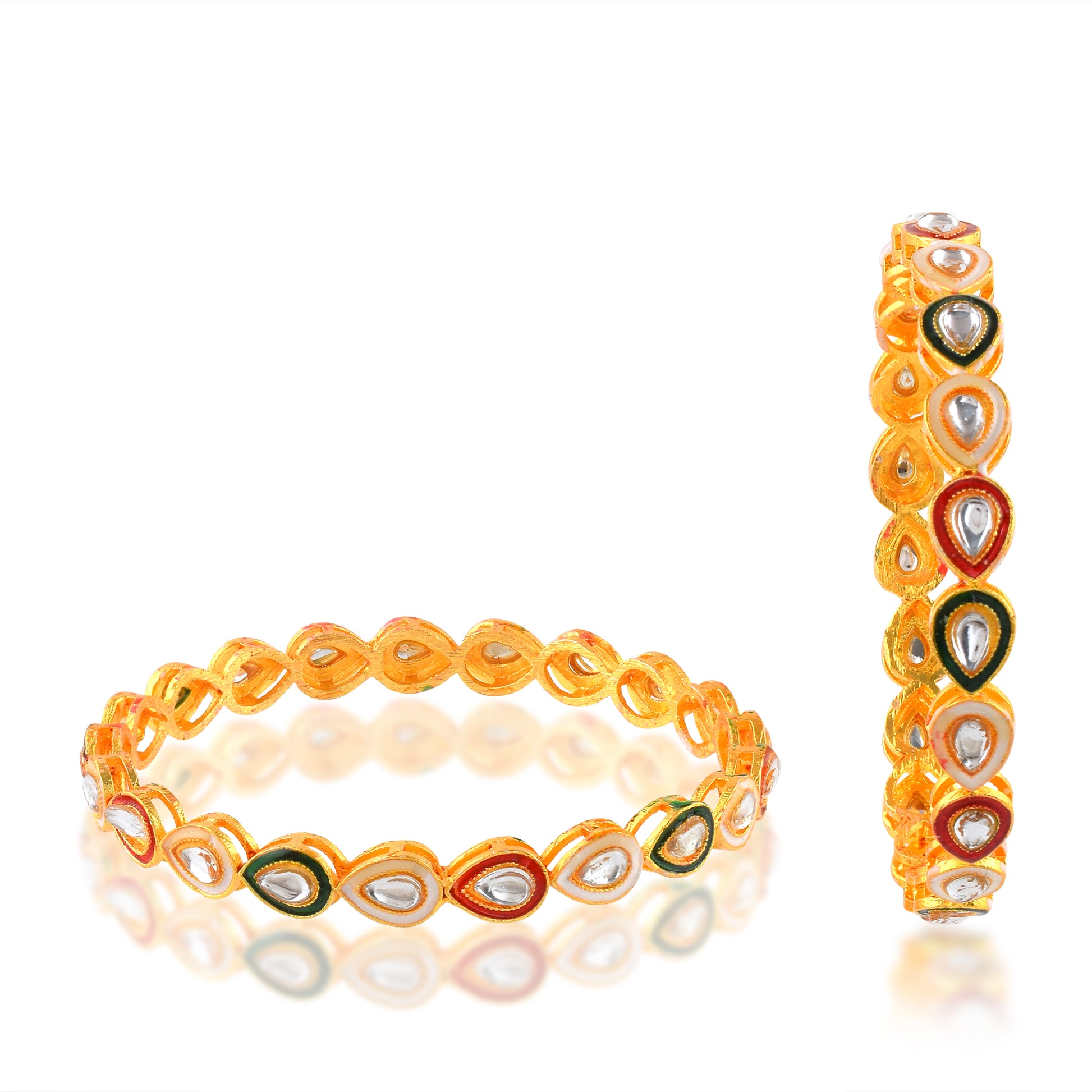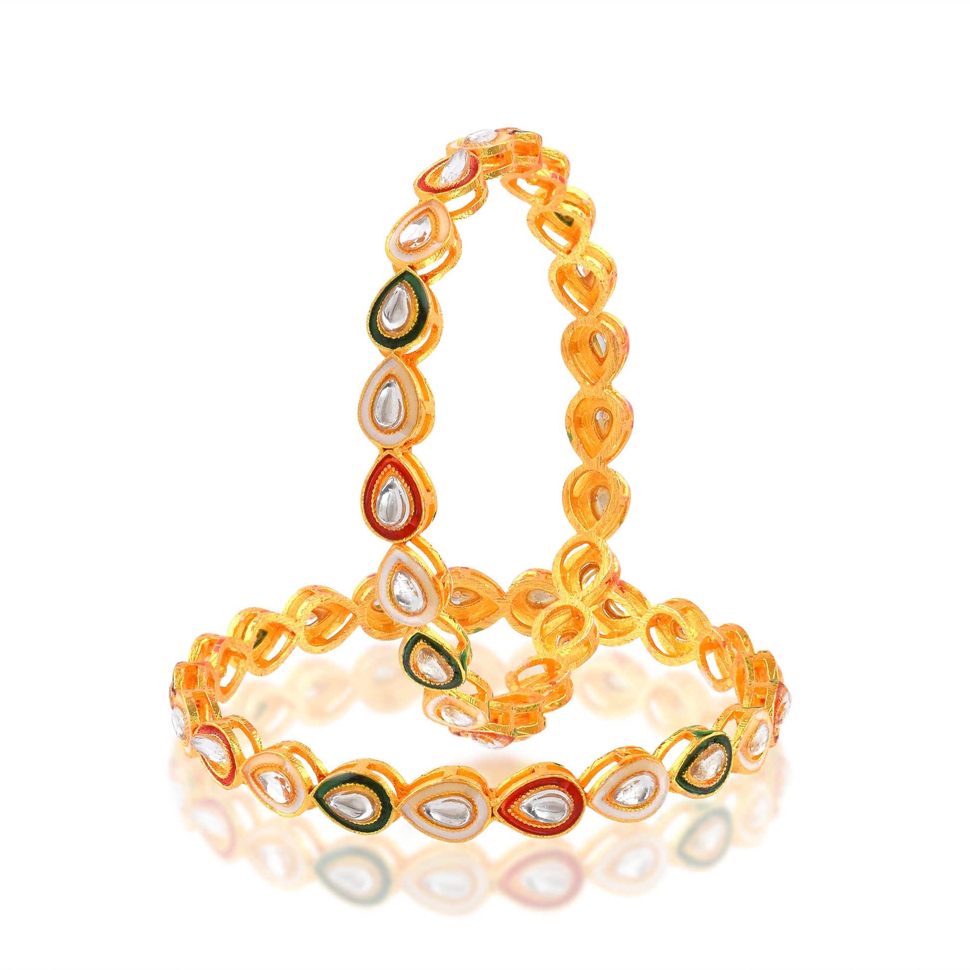 Brass 24KT Gold plated Kundan Meenakari Traditional Bangle Kada set (KDVK2307)