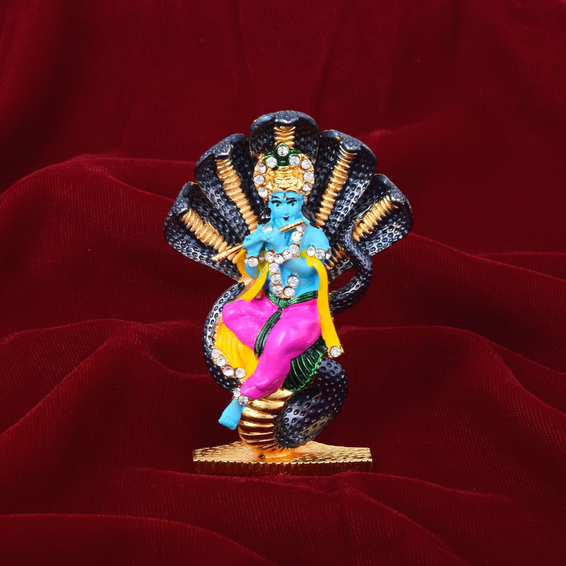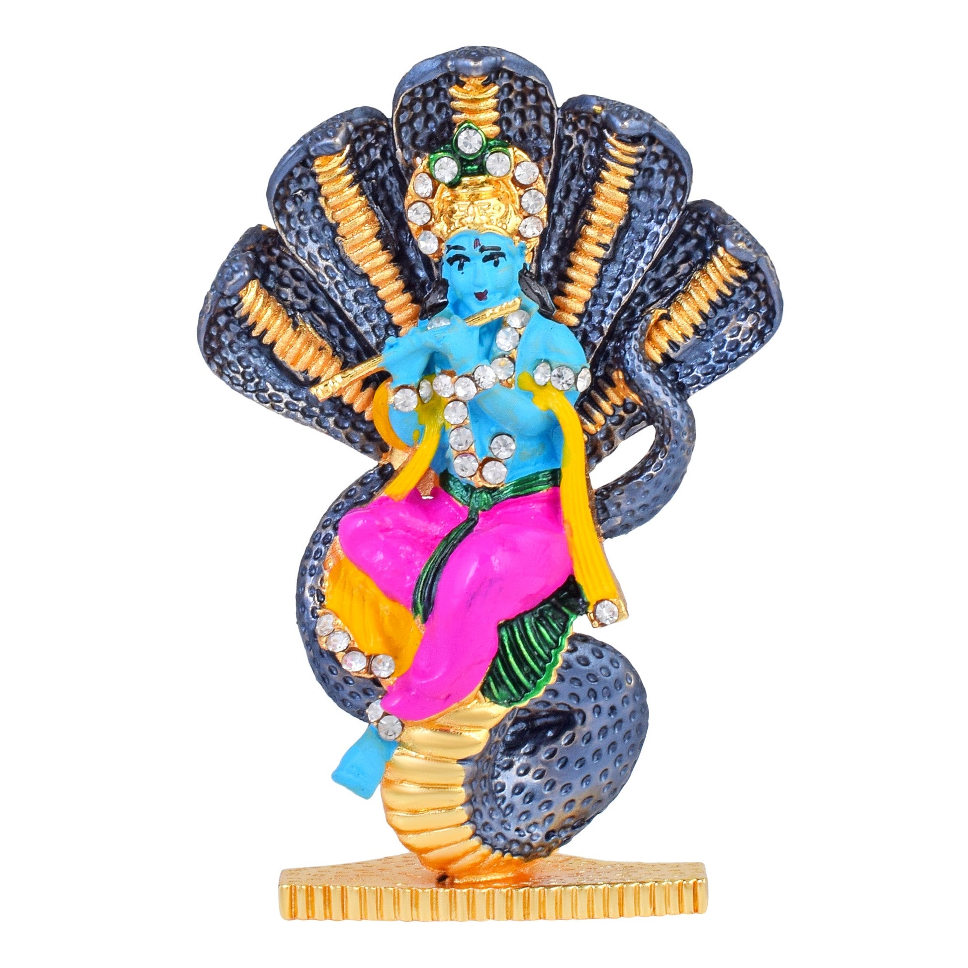 Brass Meenakari CZ Kaalia Nag Krishna idol figurine murti stand (STKL7744)