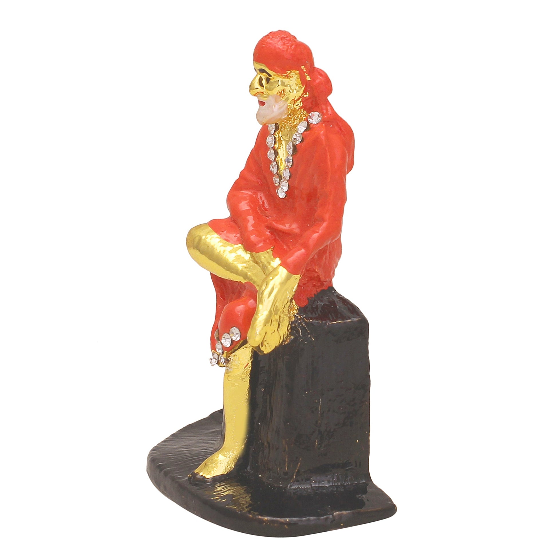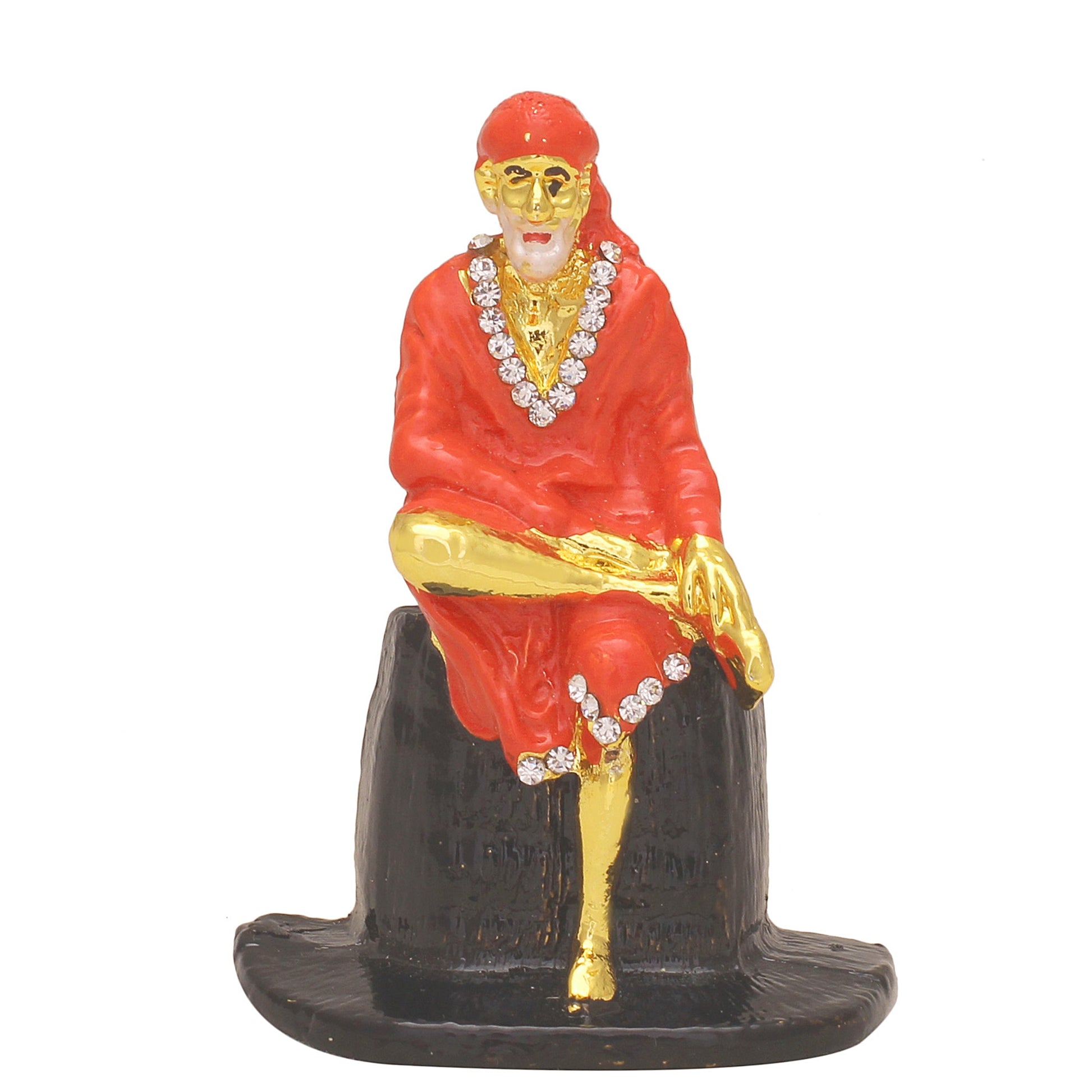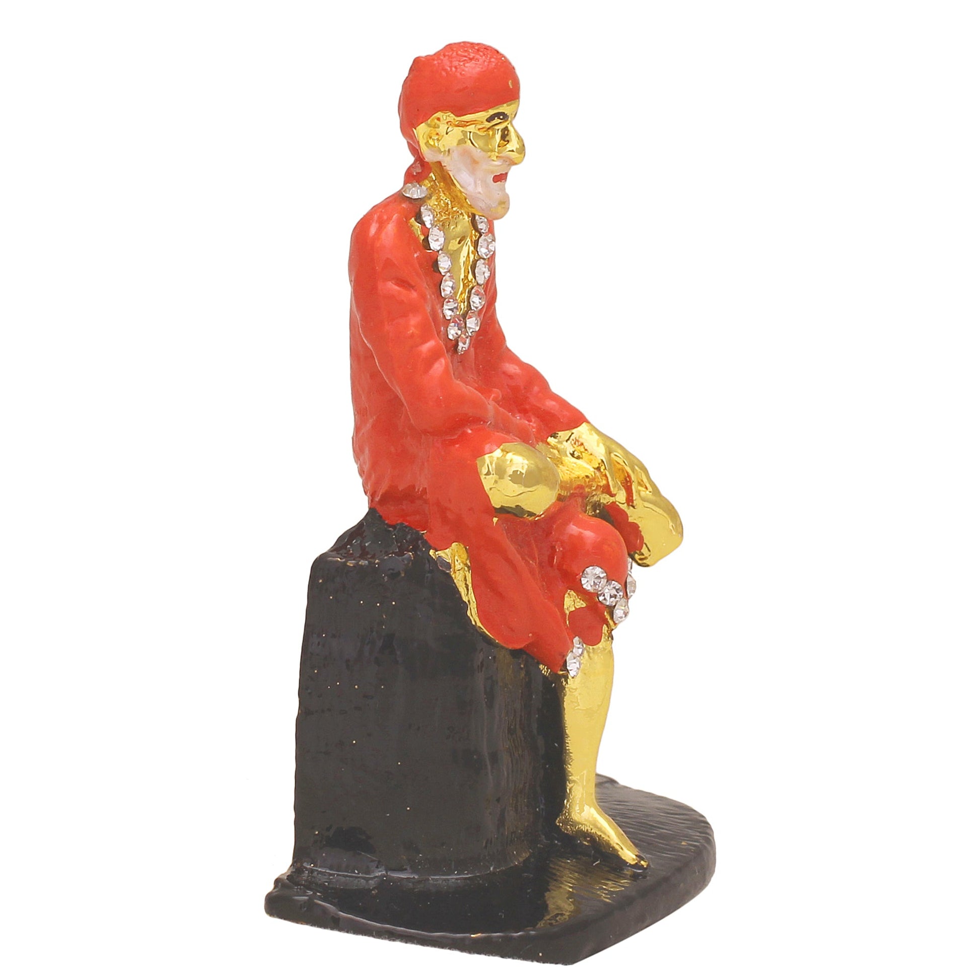 Brass CZ red Colour Sitting Shirdi Sai Baba Idol Photo Home Decor