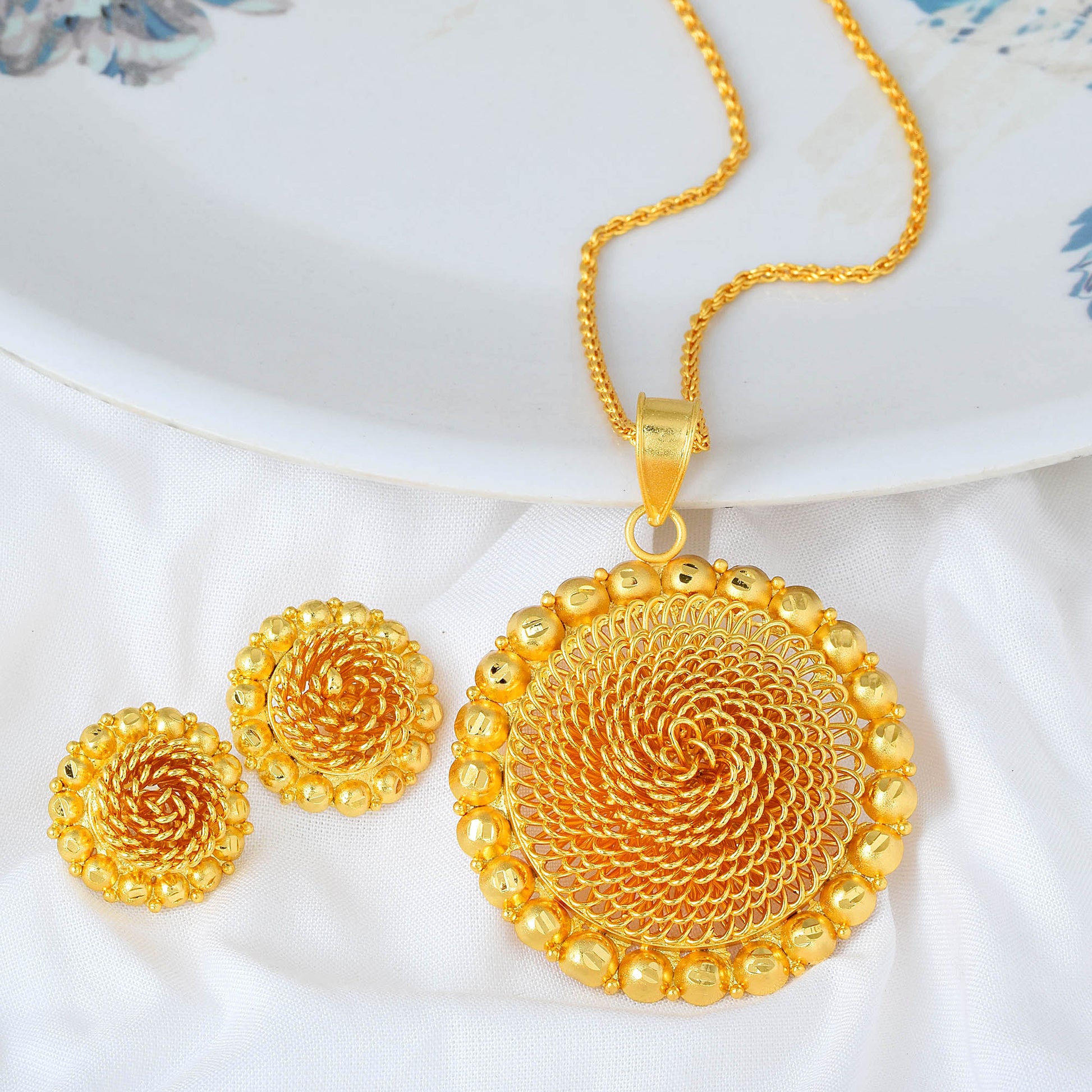 Brass Gold plated Rasrawa Rose Flower design Super stylish designer Jewellery Traditional Pendant Set
