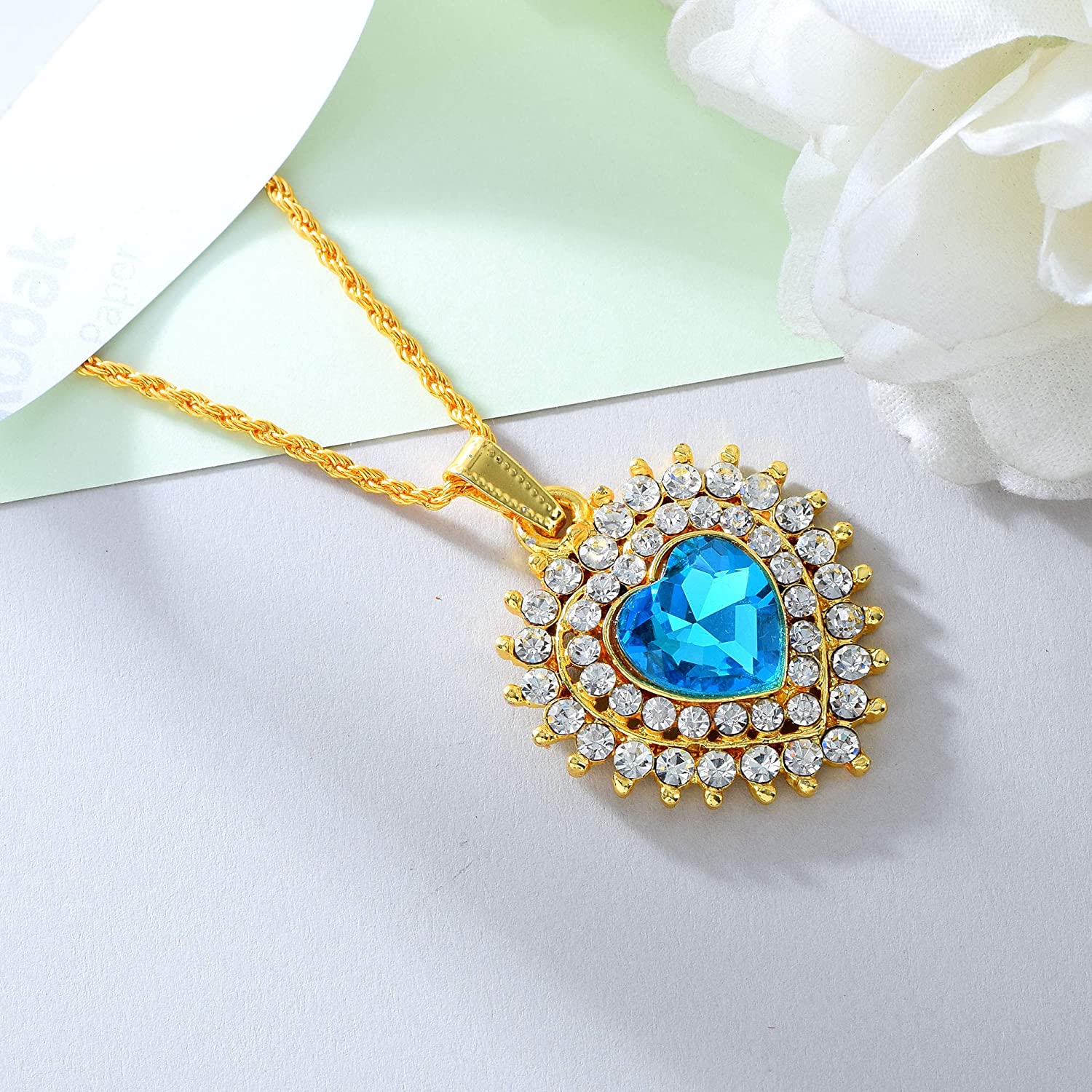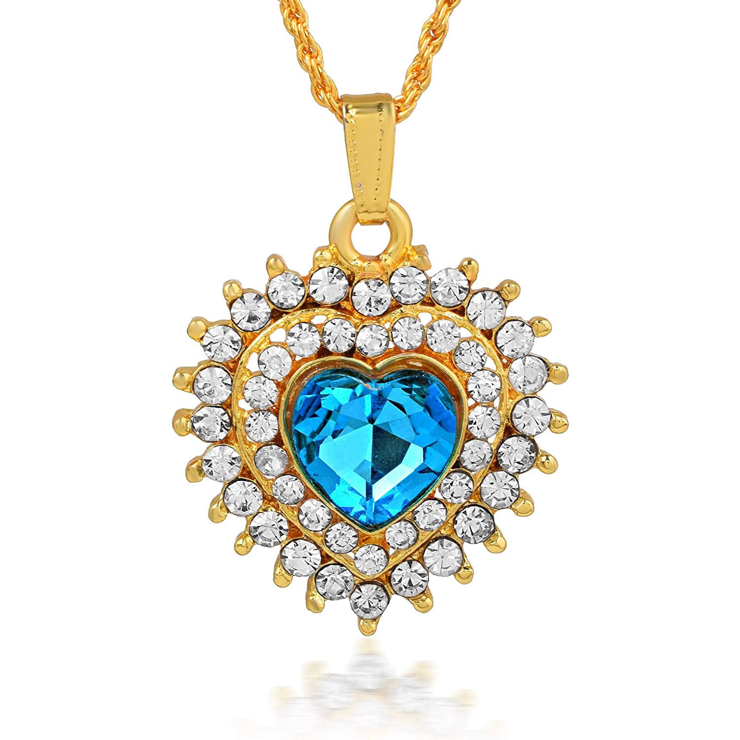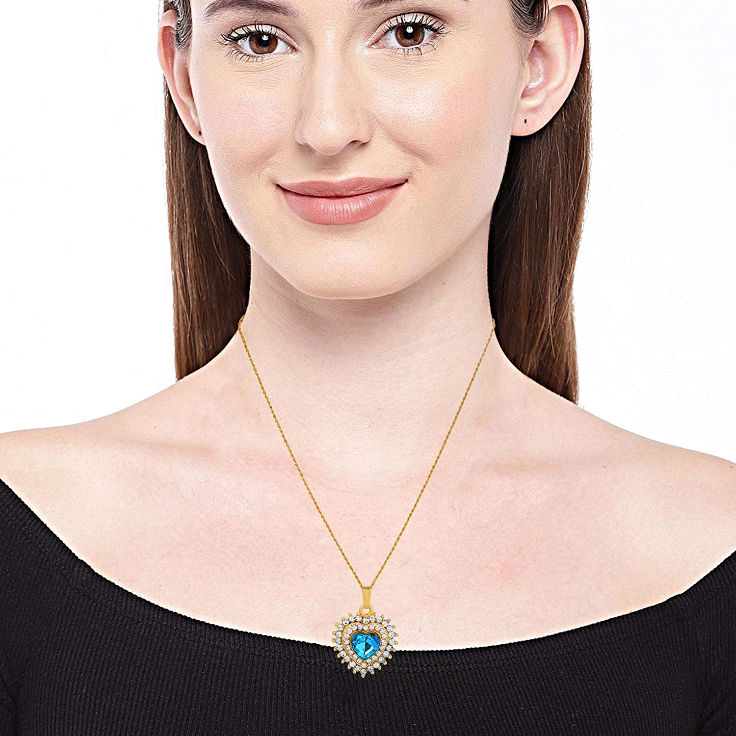 Brass Goldplated CZ Blue Heartshape Chain pendant Women
