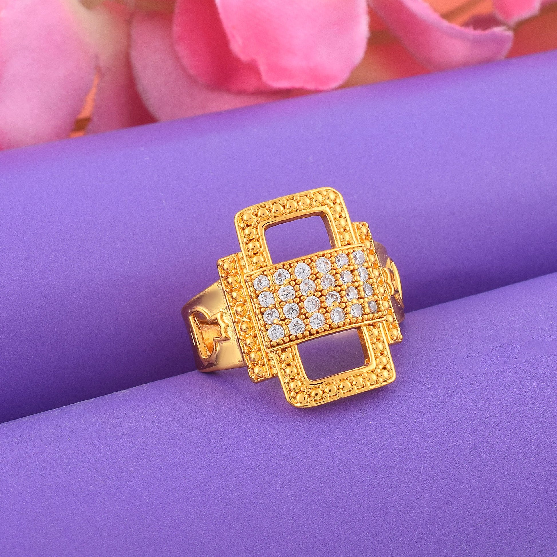 Brass Goldplated Imitation Dimaond Luxe Fashion Stylish Wedding Jewellery Fingerring Men