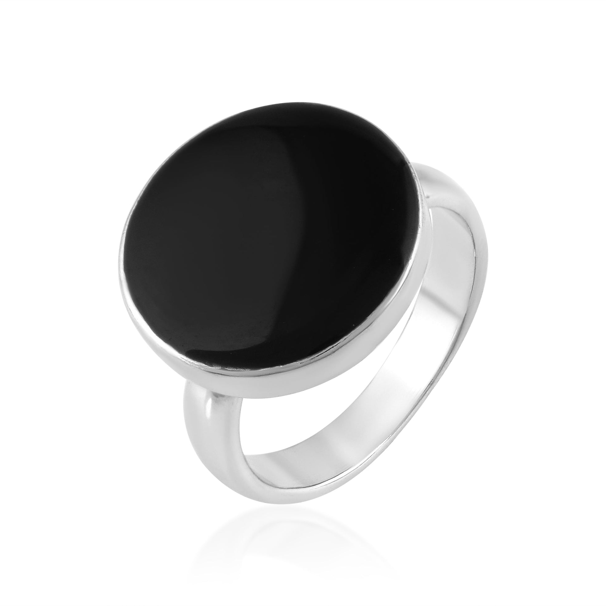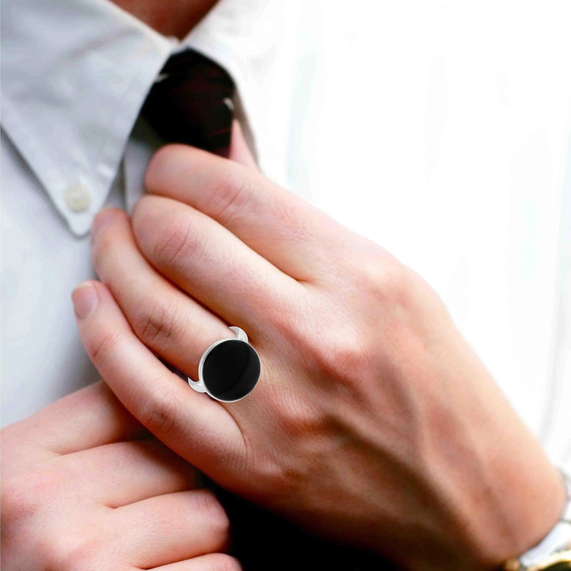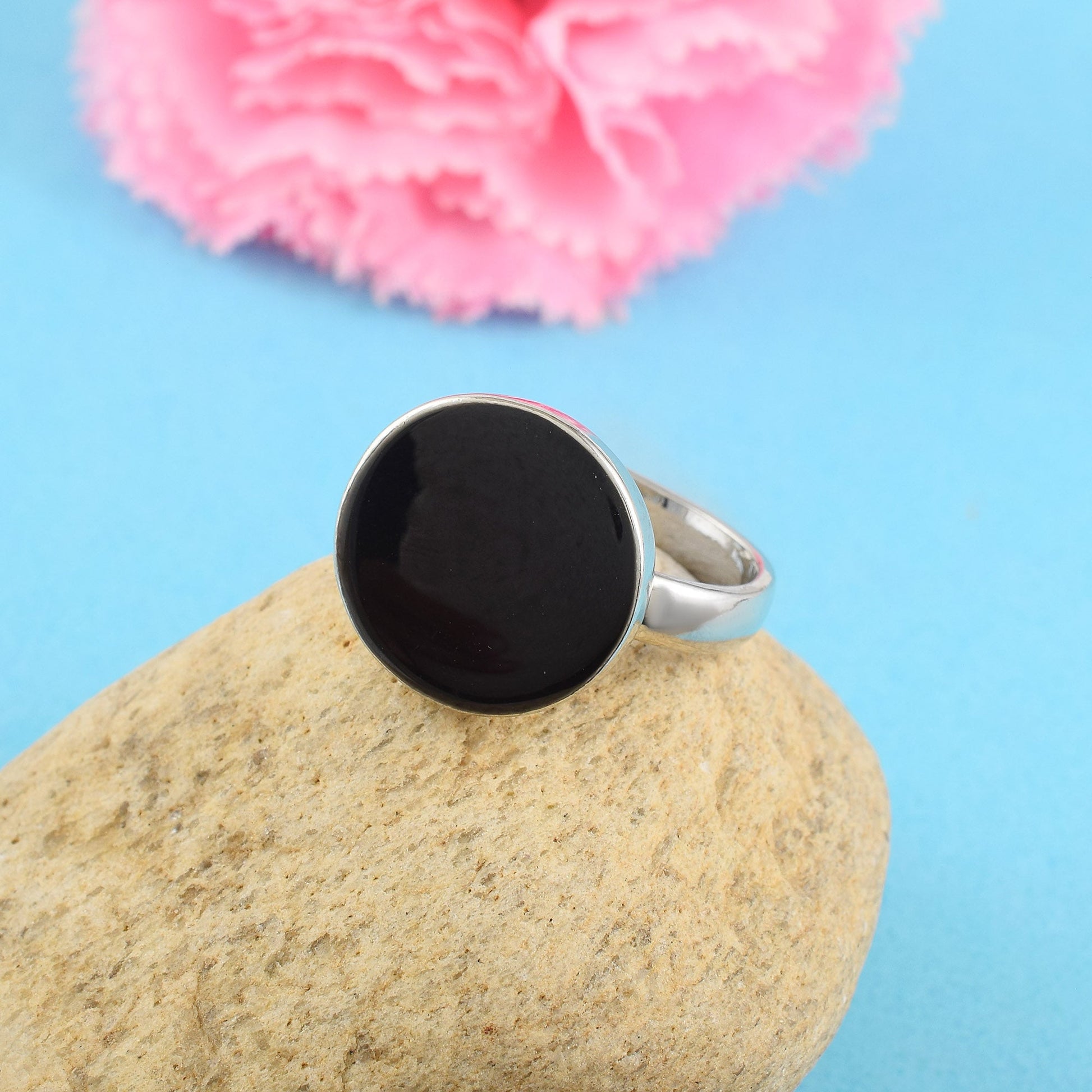Brass Silverplated Flat Black Onyx Signet Fashion Fingerring