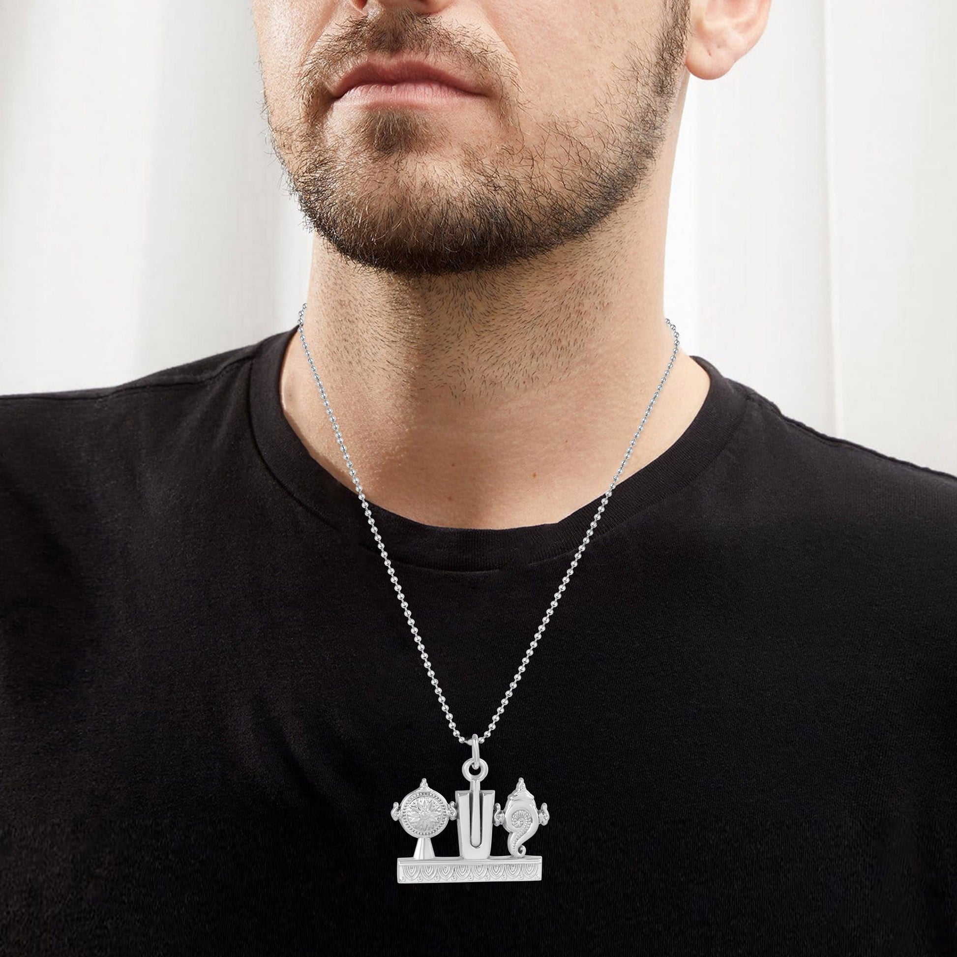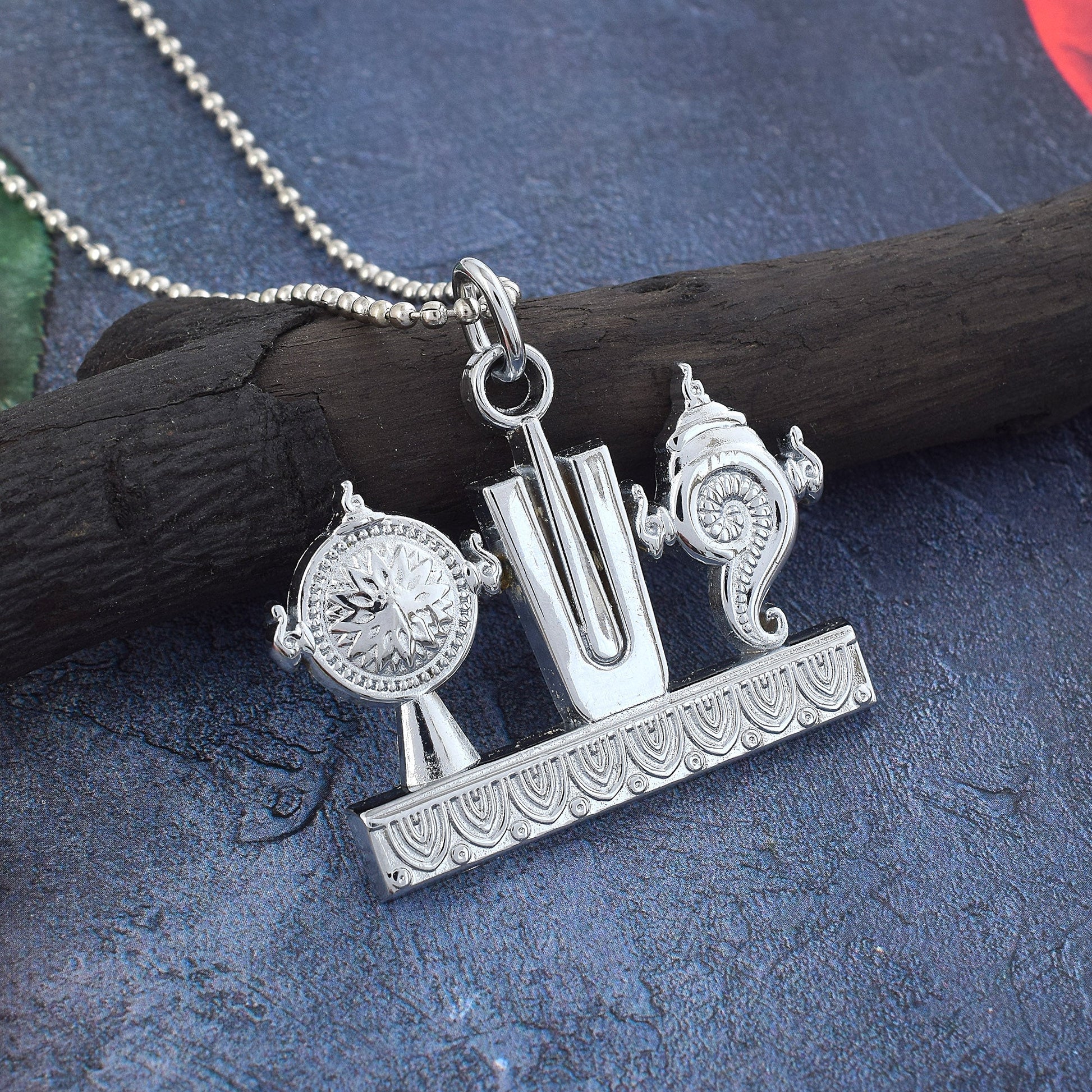Brass Silverplated Tirupati Balaji Worship Symbols Chain pendant